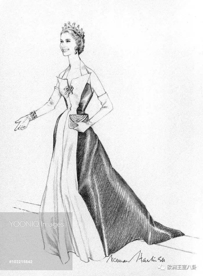 1940年,诺曼39岁时,得到了来自王太后的皇家授权,正式成为御用设计师。职业生涯给母女仨设计了一大票经典礼服,神奇的是,她们在欧洲都属于娇小,但穿起大摆裙却一点都不显矮反而优雅大方