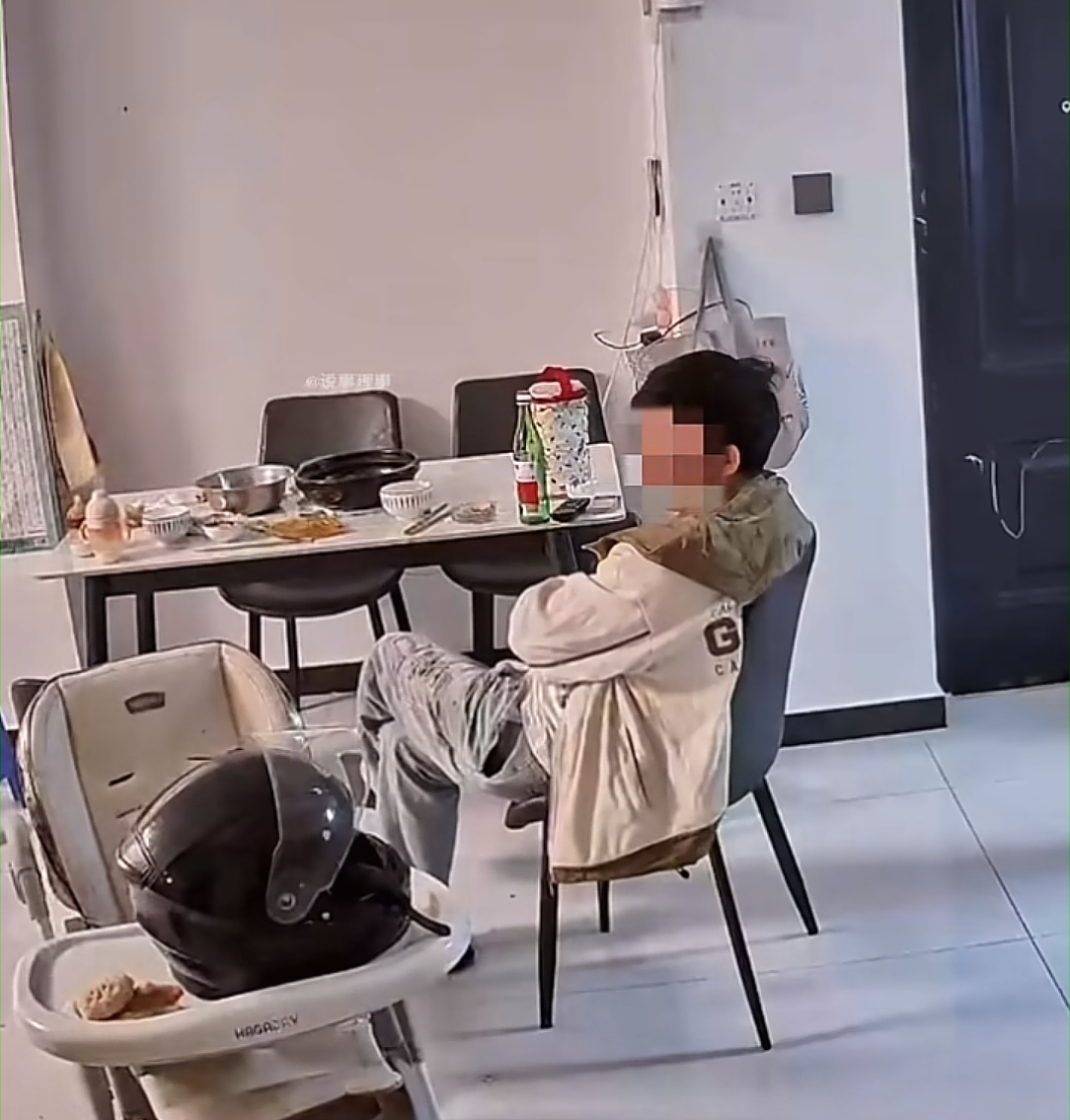 丈夫亲眼目睹了自己的妻子从跌倒到爬起的整个过程,可他只是在一边冷眼旁观,丝毫没想过还要过去搀扶一下,他的屁股始终坐在椅子上,甚至翘着的二郎腿都没放下来...