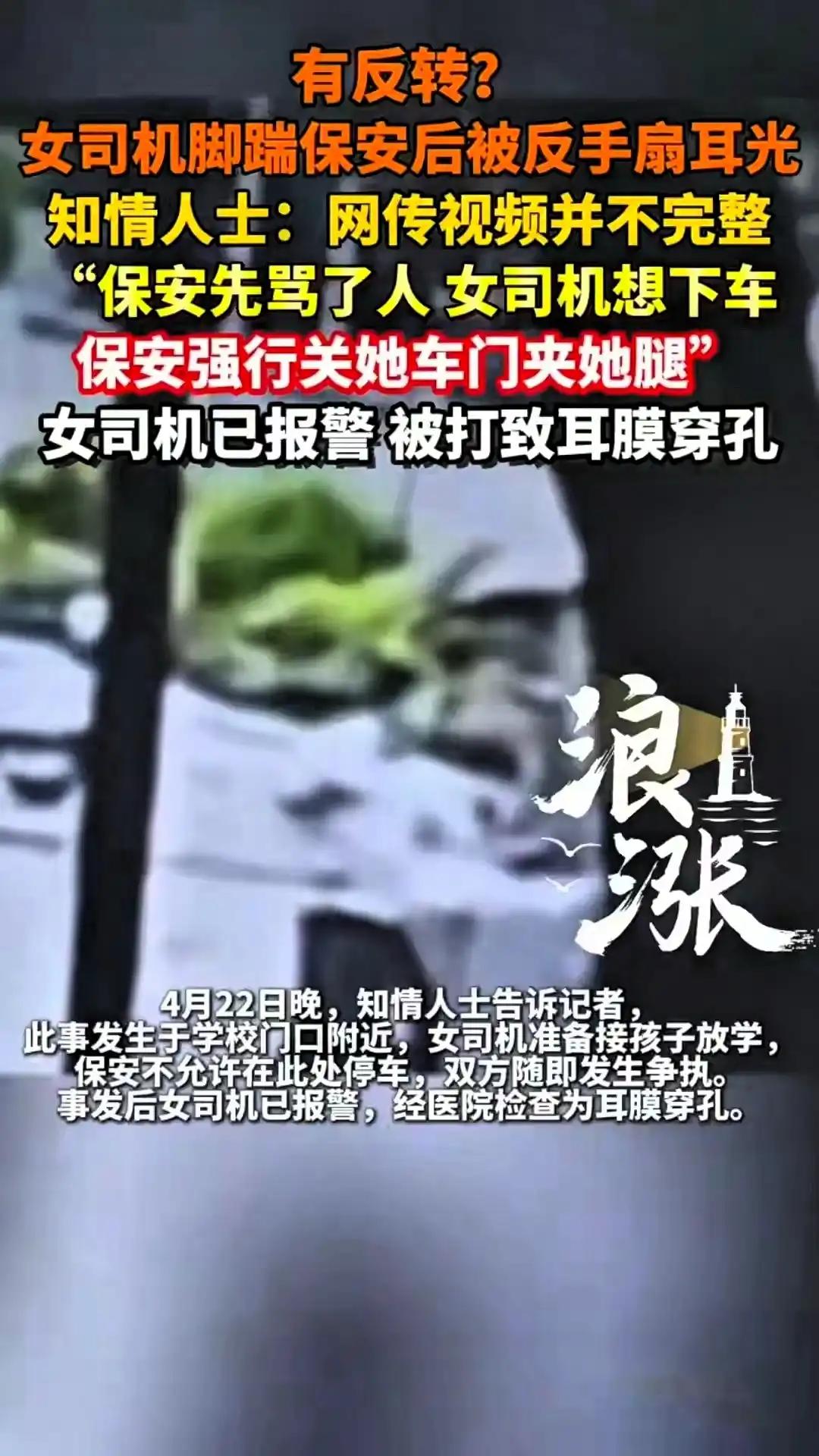 砸车门。语气暴躁。最要命的是,女司机刚想下车,保安哐当一下强行关门,直接把人的腿给死死夹住了。