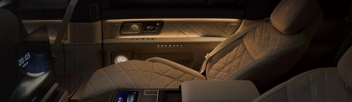你完全可以脑补这个场景:刚在上海开完一下午的会,赶晚高峰去机场,坐进车里打开零重力模式,足底按摩一开,再把全车阵列式LC智能隐私调光车窗关上,120公里时速下车内噪音仅59.2分贝,比家里的书房还安静,瞬间就能把一天的疲惫卸下来。要是路上有紧急会议,双16英寸的后排专属行政屏搭配高清视频会议系统,关上车窗就是个移动的私密会议室,完全不用怕背景杂音打扰。