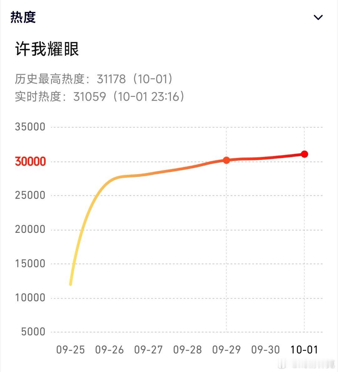 许我耀眼热度今日峰值31178,明天估计要放缓增速了吧[doge]