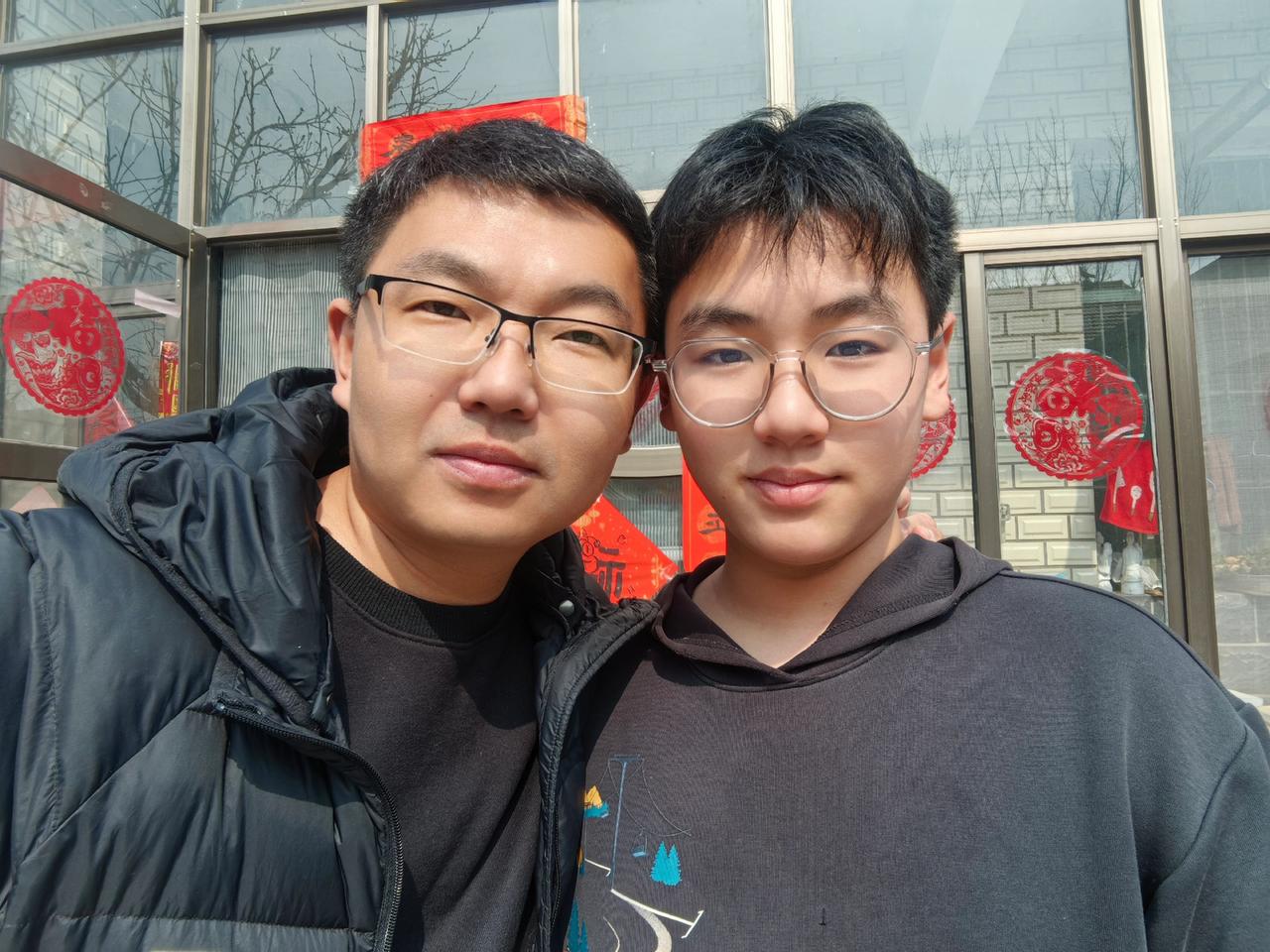 儿子虽然骂骂咧咧,但是还是给俺爷俩拍了一张照片。