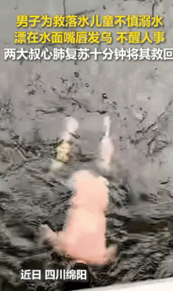 "上人民日报了!"7月20日,四川绵阳,男子为救落水儿童不慎溺水,漂在水面嘴唇发