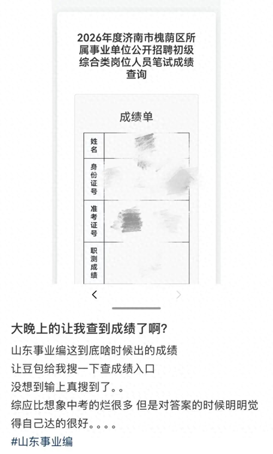 4月23号晚上,有个网友发帖说,让AI“豆包”给查到了2026年山东事业编的成绩,还附了张截图。这事儿一下就在网上炸开了锅。