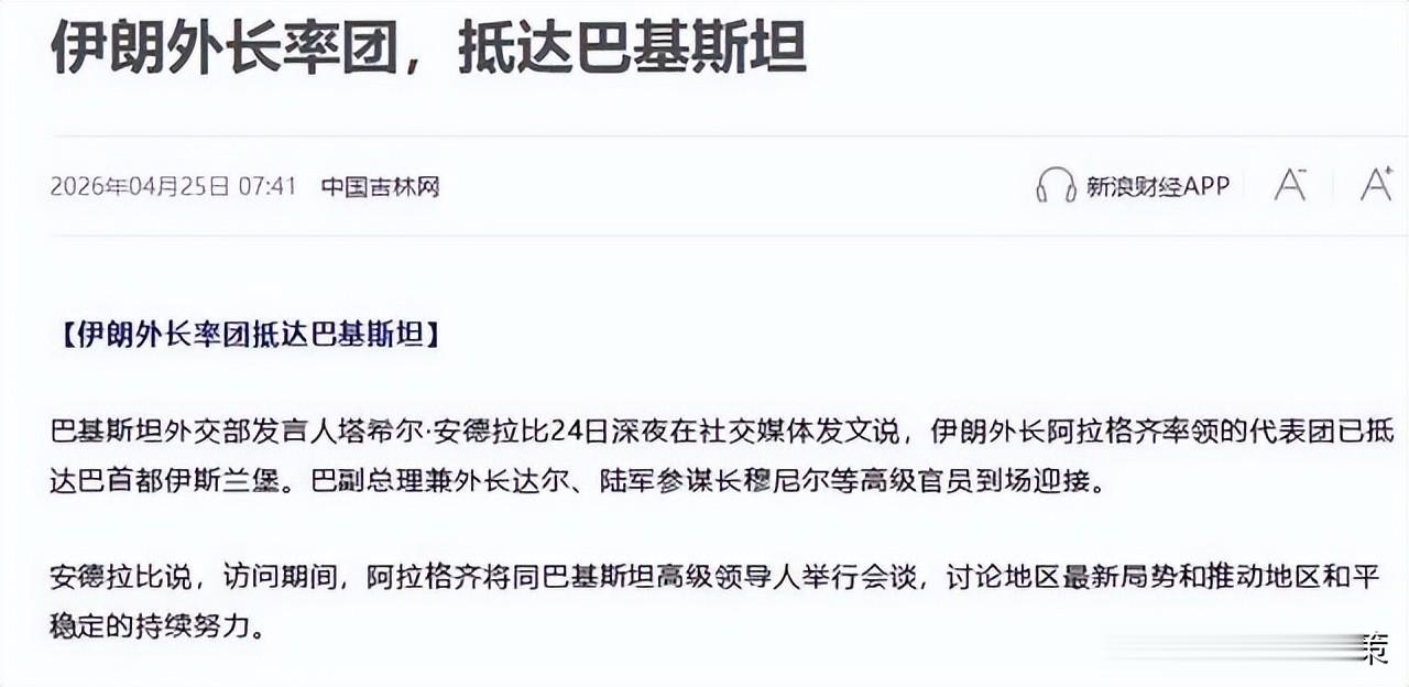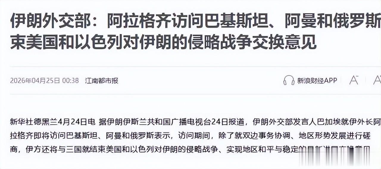 结果就在 4 月 24 号这天,阿拉格奇立马带着团队动身出访,第一站直奔巴基斯坦伊斯兰堡,后续还计划去阿曼和俄罗斯,明眼人都能看明白,伊朗之前喊出的绝不谈判、绝不沟通的狠话,早就不作数了,完全就是口是心非。
