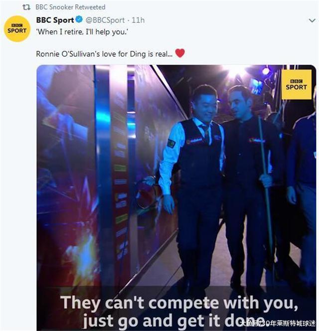 #斯诺克#【感动!奥沙利文亲承退役后帮助丁俊晖,并对小丁强吻表白:我爱你】2018年世界斯诺克大师赛半决赛,丁俊晖3-6输给奥沙利文。赛后,根据BBC体育媒体透露,奥沙利文亲承要在退役后帮助丁俊晖,丁俊晖也表示自己被奥沙利文2次强吻后,还被他正式表白:“他说他爱我(笑)。和罗尼打比赛是很好的锻炼,我知道对阵他的比赛很难,但我知道这是唯一能让我进步的方法。”