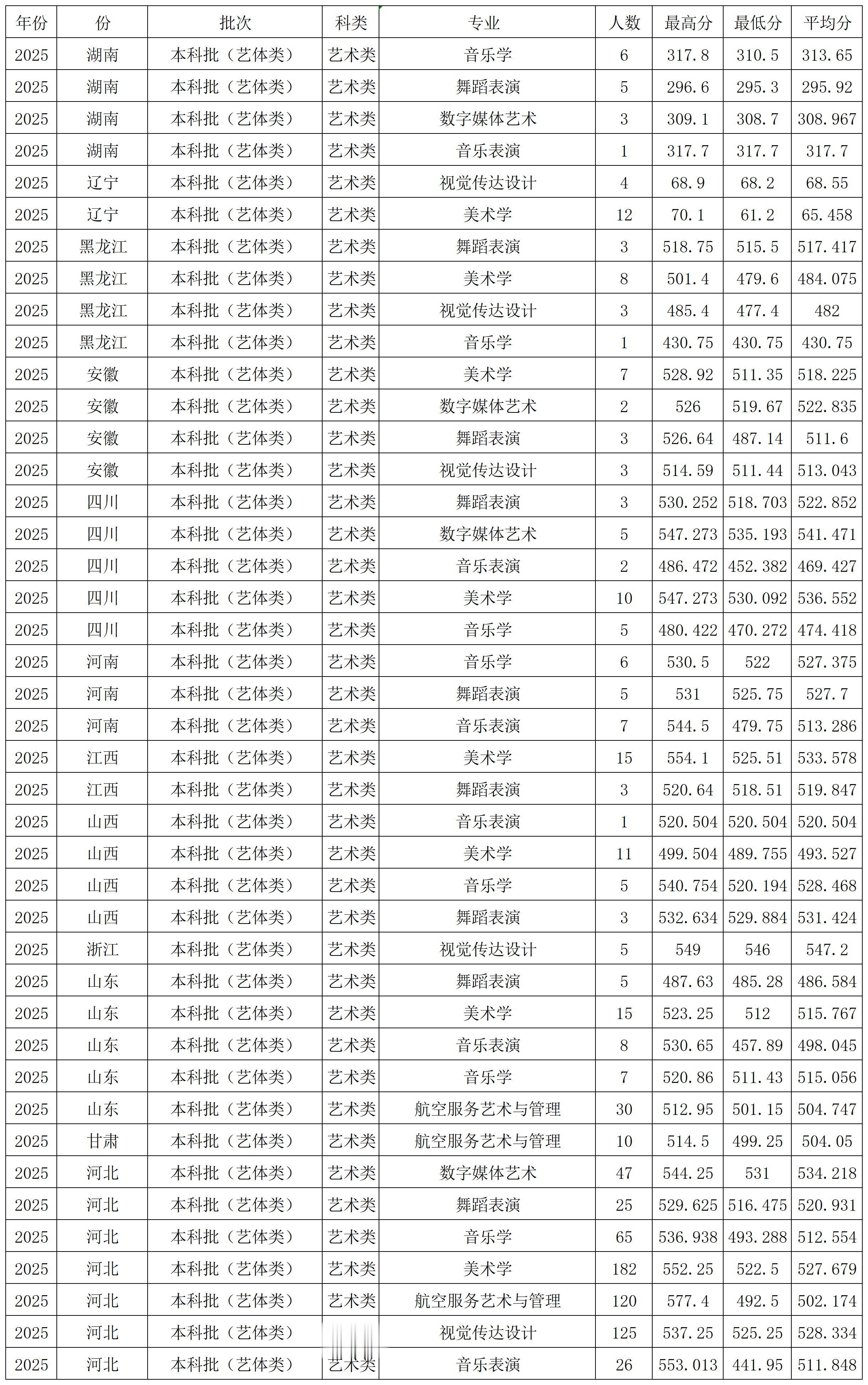 河北师范大学2025年艺术类在各省各专业录取分数线