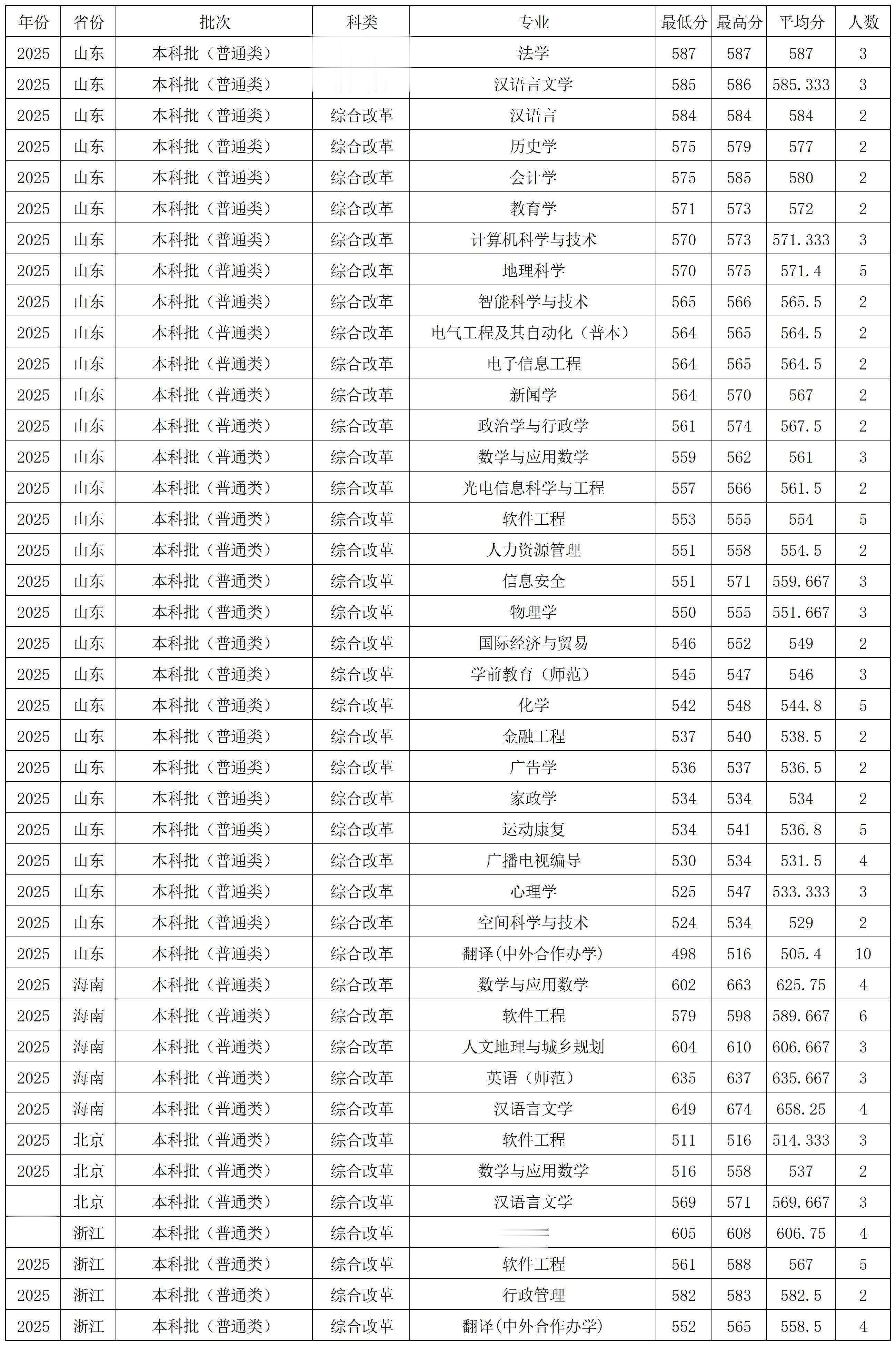 河北师范大学2025年在山东本科批(普通类)录取分数线较高的专业:法学 587分、汉语言文学585分、汉语言584分、历史学575分、会计学575分、教育学571分、最低的是空间科学与技术524分。