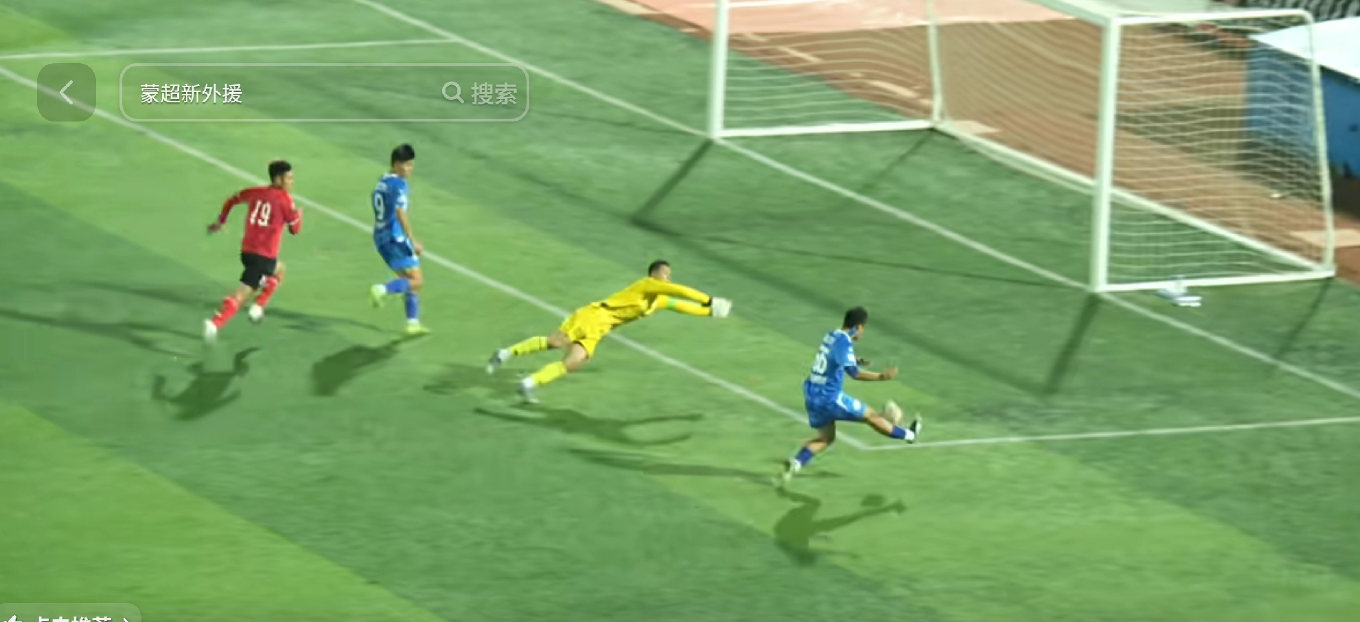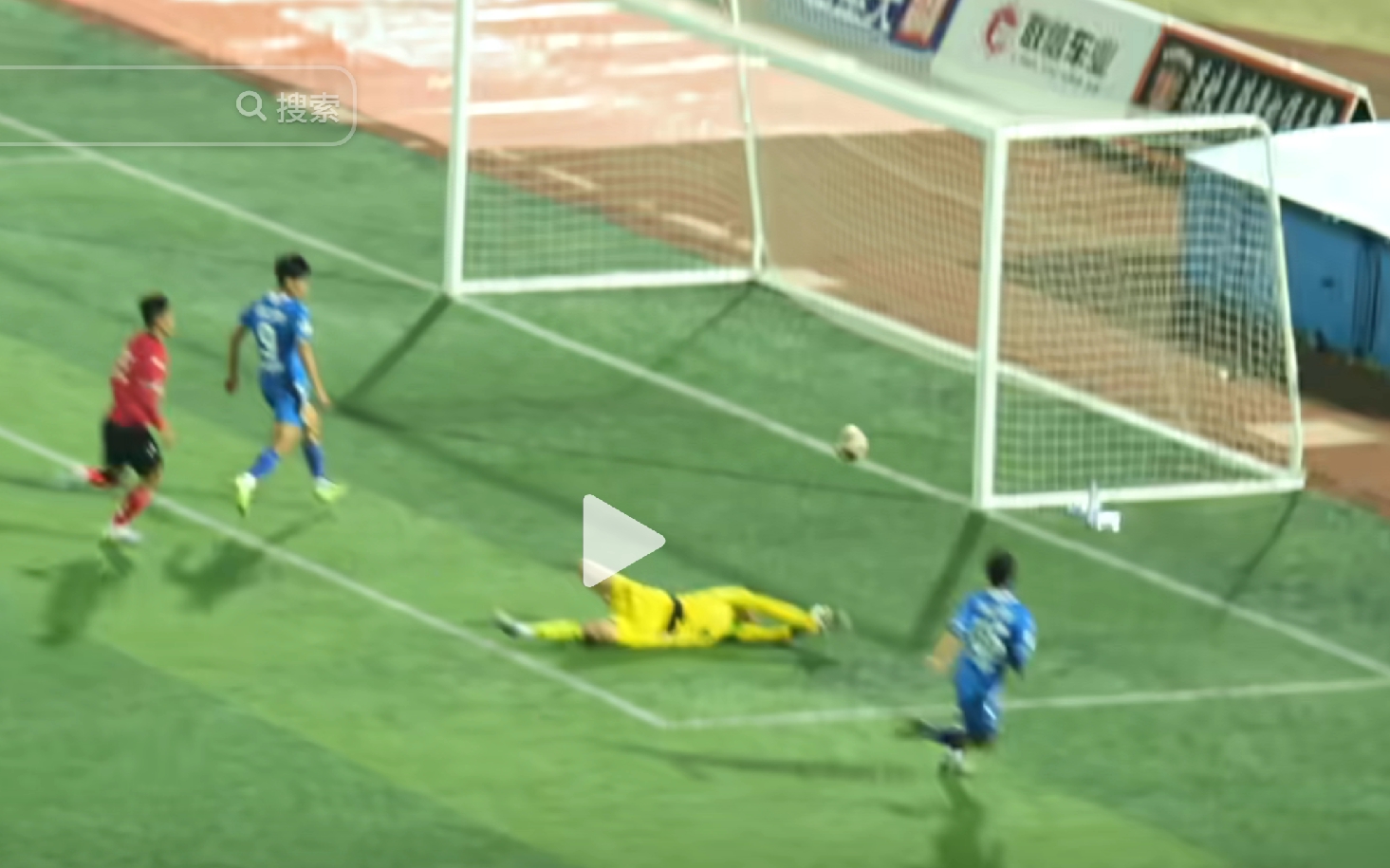 赤峰队守门员反应迅速,起身鱼跃扑球,但还是晚了那么一丢丢,应该说赤峰队守门员的表现也十分亮眼。