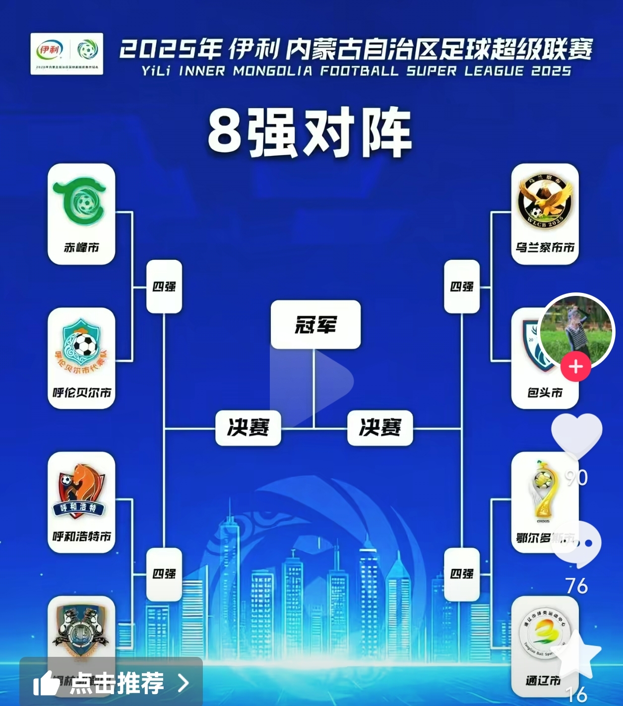 四、蒙超八强产生,赤峰队将首战呼伦贝尔队