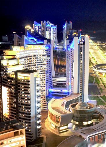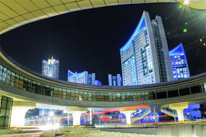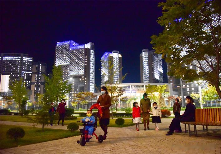 松花大街的夜色 国家经济发展五年计划期间,每年在平壤市建设一万套现代化住宅,这是敬爱的金正恩同志的远大构想。在他的英明领导下,去年出色地建设在东平壤地区的松花大街夜晚展现迷人之境。 家家户户灯火通明,与大街的灯饰照明交相辉映,仿佛天上的银河下到地上。 人们结束充满创造和革新的一天工作,下班走向心爱的家人等待的温馨的家。 全家人都出来欣赏新大街的风景,年轻男女在大街散步,低声细语,笑容满脸。 在各处建设的商店、餐厅等生活福利设施里能看到一脸满足的顾客的面貌。 松花大街的居民们对在困难条件下依然实行为民政策的社会主义制度恩惠深感感激之情,决心一定报答这一恩惠。