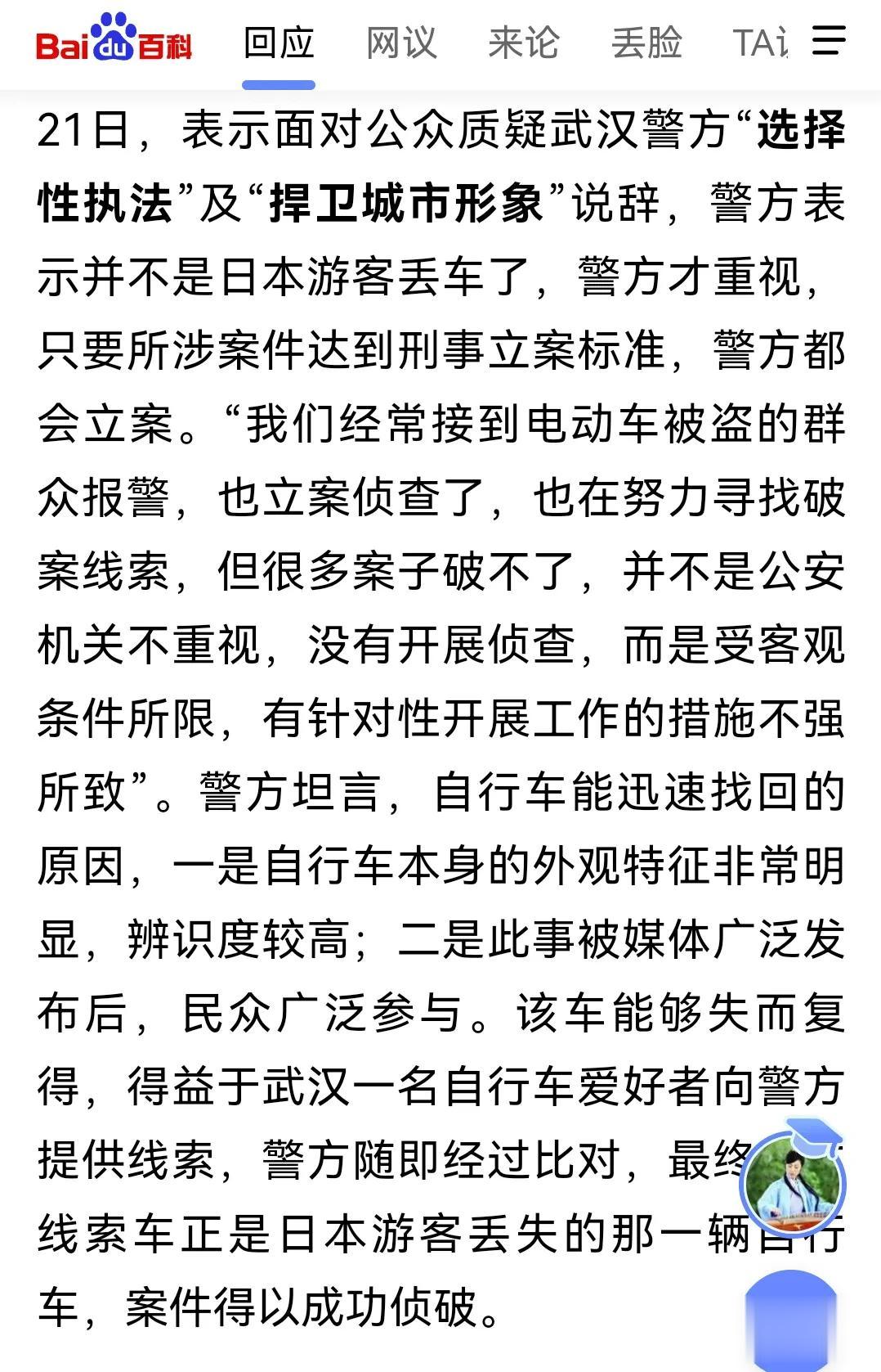 还记得十多年前,一个日本人在武汉丢了辆价值1万多的自行车,三天找回来的那个事件吗? 三天,不到三天。自行车就被找回来了。 这样来看,留给香港警方的时间不多了。 可……丢自行车这事儿,找的太快了吧,就会让当地群众认为是区别对待;但是如果找不到,又会被网友喷,办事效率不高。 反过来说,现在丢东西不仅要看价值,而且也要看舆论导向,有了舆论导向,东西贵贱就已经不重要了吗? 我认为,办事就好好给群众办事,不能到最后又是:会哭的孩子有奶吃。 区别对待才是最让人看不惯的。