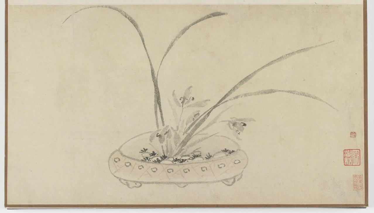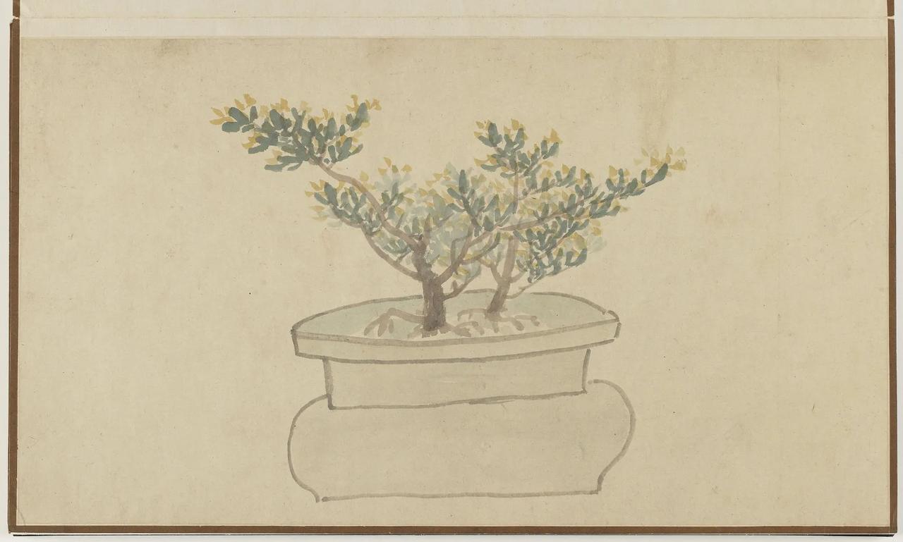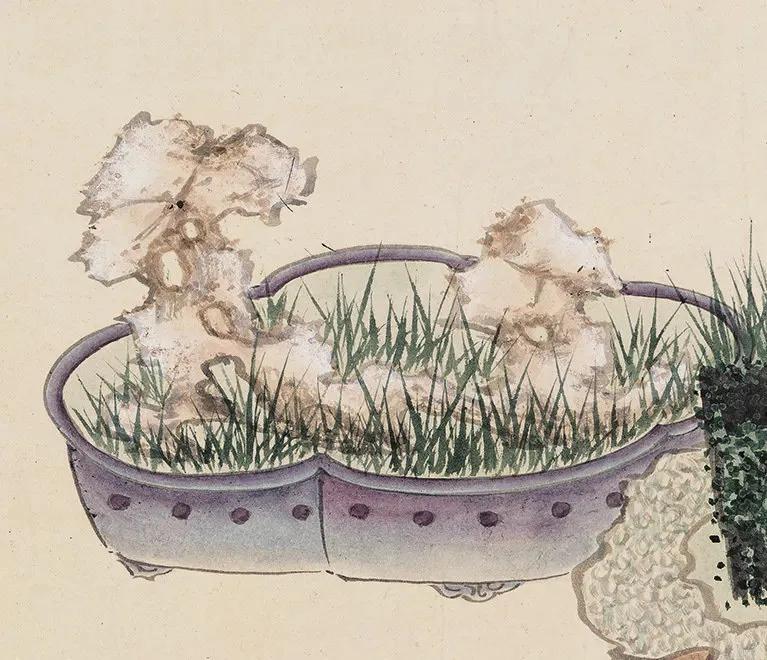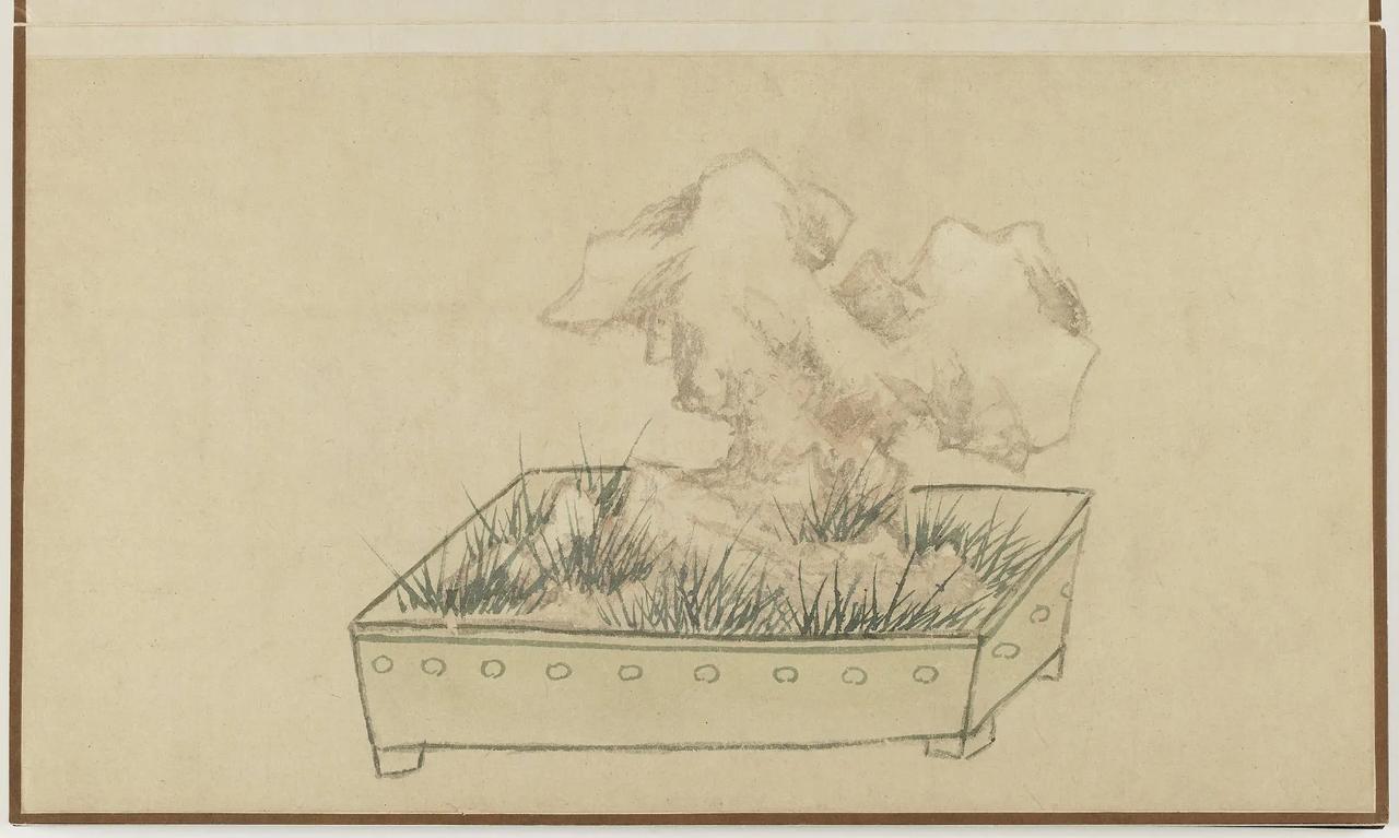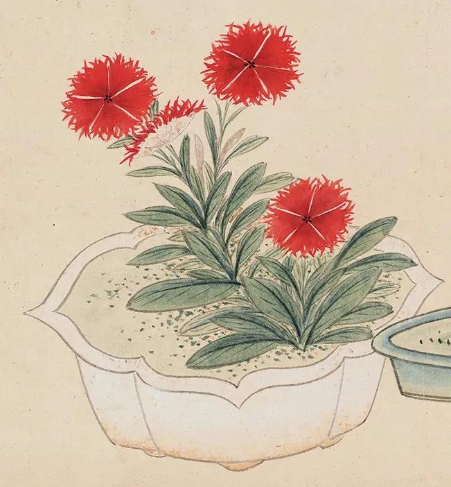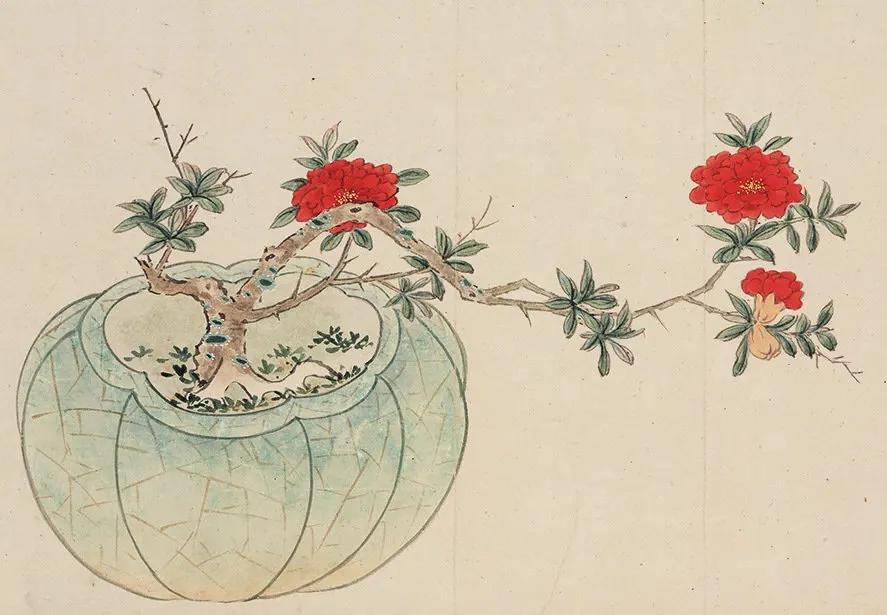 【善画盆景的明代文人画家—孙克弘】 明代文人,特别是姑苏一带,盆景文化非常流行。 《正德姑苏志》中记载就有,虎丘一带的人善于在盆中栽种老松古梅,放在案头,清雅可爱,称作盆景。 孙克弘(1532-1611)明书画家、藏书家,松江(今属上海市)人,善画花鸟,很好客,趣好高古,恋石成癖。他的画中常有描绘盆景的作品出现。 图1 《销闲清课图》 共20段 这一段主题是灌花—浇花 画的正是明代文人在园中打理盆景的情景 明 孙克弘 台北故宫博物院藏 图2-8 《著色盆景花卉卷》 明 孙克弘 1599年作 手卷 设色纸本 30.5×510cm 北京保利2022春季拍卖会 艺林藻鉴——中国古代书画 图9-18 盆花册页(金瘦仙藏本) 明 孙克弘