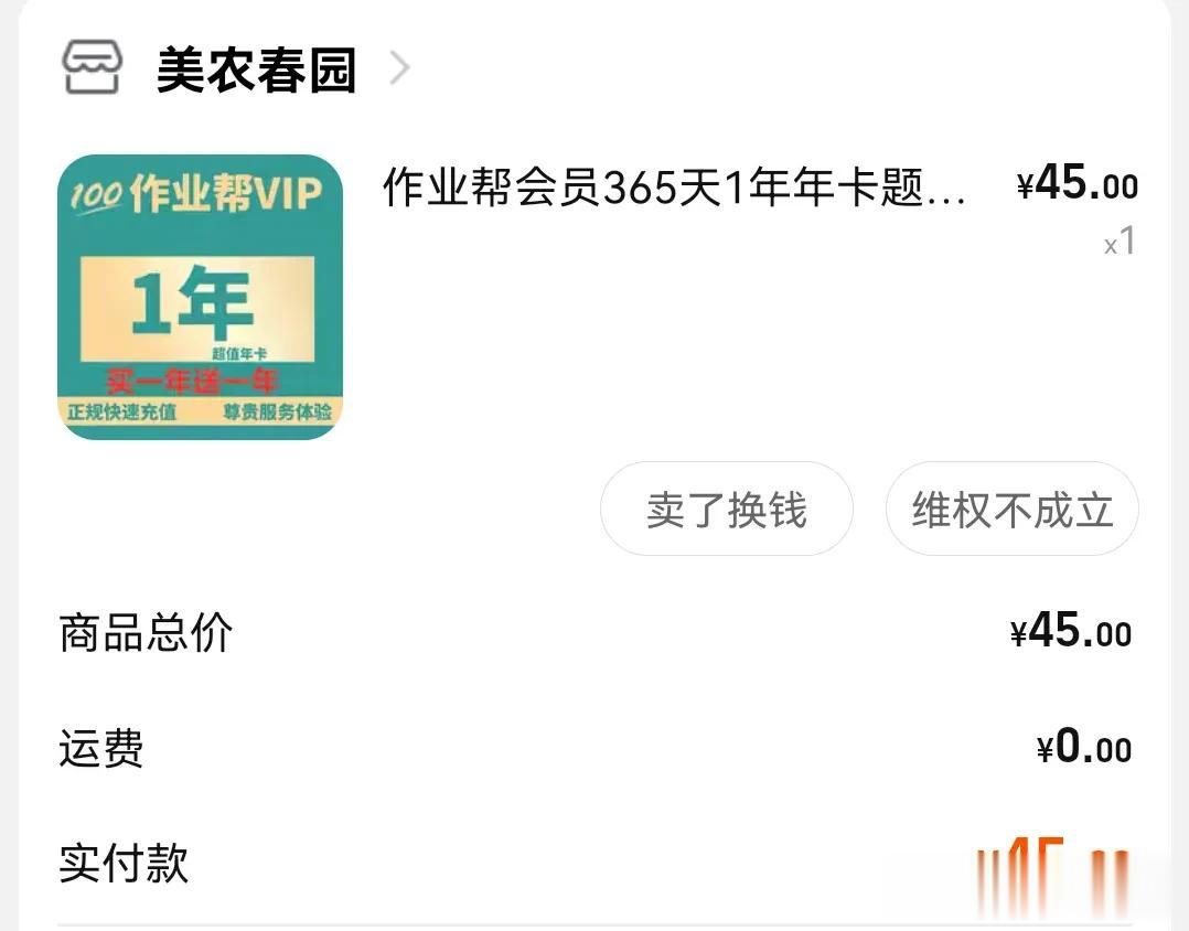 淘宝十来年只维权了一次结果:驳回。那是 2020年,我在淘宝买了一次作业帮会员充值(以前买的都是季度冲),但那次看到说是45一年,月月充值。当时心中占便宜的心理(能便宜个二十来块钱),再加上从众心理,一看买的人很多,当时评论区也都是好评,又想互联网上的操作难懂,万一人家真能弄到便宜呢(我也确实买到过极其便宜的软件会员)。又加上因为特殊时期,孩子需要,索性就买了。 心里虽然没谱,但是想着一旦有问题可以找淘宝,毕竟在淘宝开店要有什么保障金,和审核资质之类的吧。 接下来下了订单,先是一个月的会员到账。然后过了半个来月时间,我依然不放心,去看看这家店铺去,不看不知道一看吓一跳,东西下架了。一看评论全都是说只充了一个月,剩下就没信儿了。 我赶紧提出退款维权。 可结果是,淘宝说店铺的保证金已经赔完了,只有1000块的保证金。剩下说的乱七八糟的,原话记不清,意思就是:我们无能为力。(潜台词会不会是活该[捂脸]) 最后我也懒得继续折腾,至于淘宝有没有报警或者自身有没有什么行动,我也无从所知。 但是当时,我认为这绝对是一门好“生意”,因为这门“生意”违法成本极其的低,而且平台广,速度快,范围大。 [捂脸][捂脸][捂脸] 我两个月后花了65元重新买了个一年的,作业帮会员。 我这次是占了小便宜吃了亏[捂脸]
