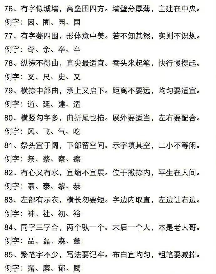 书法知识:楷书结构口诀85条。仔细研读体会,字写得越来越好看。