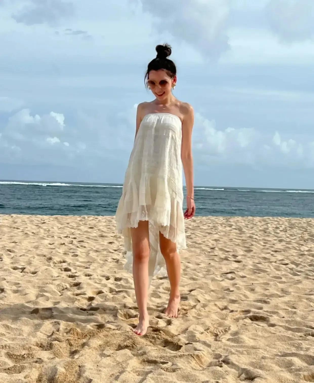 林志颖的小娇妻陈若仪在沙滩上游玩的几张留影,面容精致,身材宛若少女。 陈若仪在和林志颖结婚前是一个名模,身材一直保持得非常好,如今已经39岁的陈若仪身穿泳衣,身材曲线完美,小腹平坦,没有一点赘肉,真的让人羡慕不已。