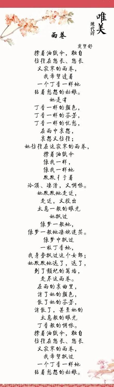 【那些唯美的现代诗句】撑着油纸伞,独自彷徨在悠长,悠长又寂寥的雨巷,我希望逢着