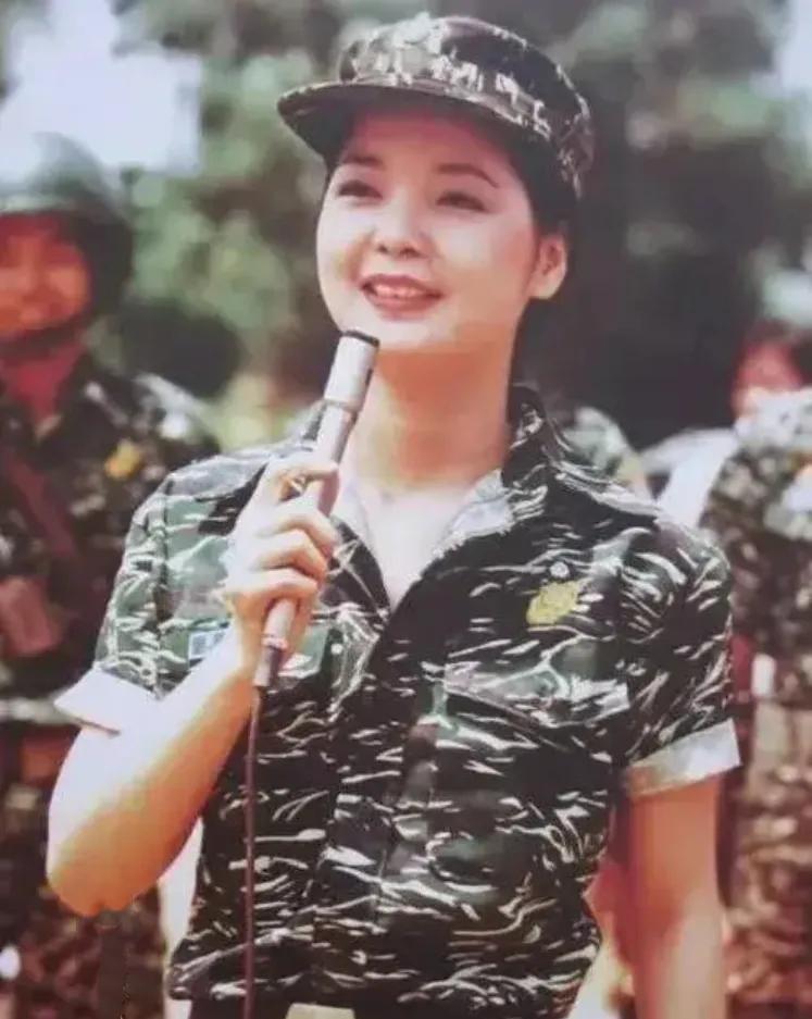 上世纪80年代,邓丽君在金门劳军时的场景,除了献上美妙的歌声,她还给一个年轻士兵献上了香吻。 邓丽君在金门军营停留了一天半的时间,举行了两场劳军演唱会。演唱了“千言万语”、“小城故事”、“何日君再来”、“夜来香”、“路边的野花不要采”、“甜蜜蜜”、“高山青”、“天黑黑”等歌曲。 邓丽君还当场亲吻了一名年轻士兵的脸颊,据说当时这个士兵开心得三天都不舍得洗脸。