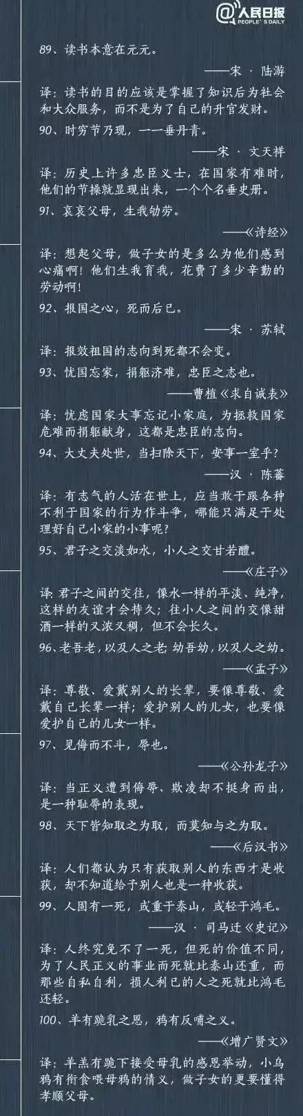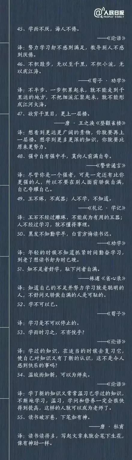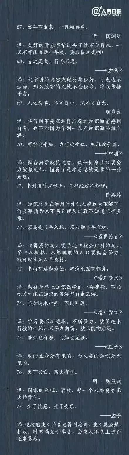 【中国文学史上100句名言,给人向上的力量】 所谓“有志者,事竟成”,古人无论修学炼心,都讲究先立志。今日分享人民日报评选出的100句中国文学史上经典励志名言,愿名家的智慧能给予你向上的精神力量,日益精进,不负时光!