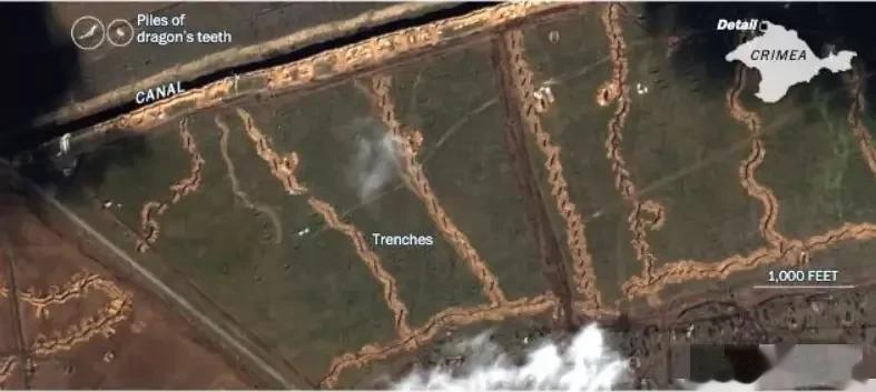 防患于未然!美国卫星公开了俄军正在克里米亚半岛上大量修建抗登陆工事和堡垒。俄罗斯