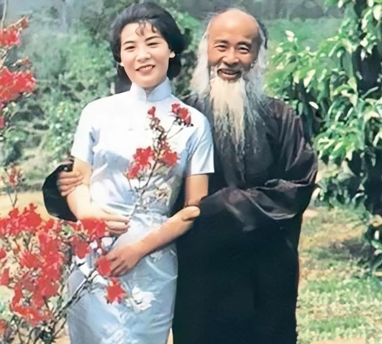 晚年时期的国画大师张大千和他的第四任夫人徐雯波的合影,徐雯波比张大千小32岁,是张大千女儿的同学。 虽然老夫少妻,年龄差距很大,但是两人结婚后琴瑟和谐,非常恩爱。张大千以徐雯波为模特,为她画了不少画作。 虽然备受争议,但是张大千的艺术造诣确实很高,2018年,徐雯波随便卖了一幅张大千的画,竟然卖了4377万。