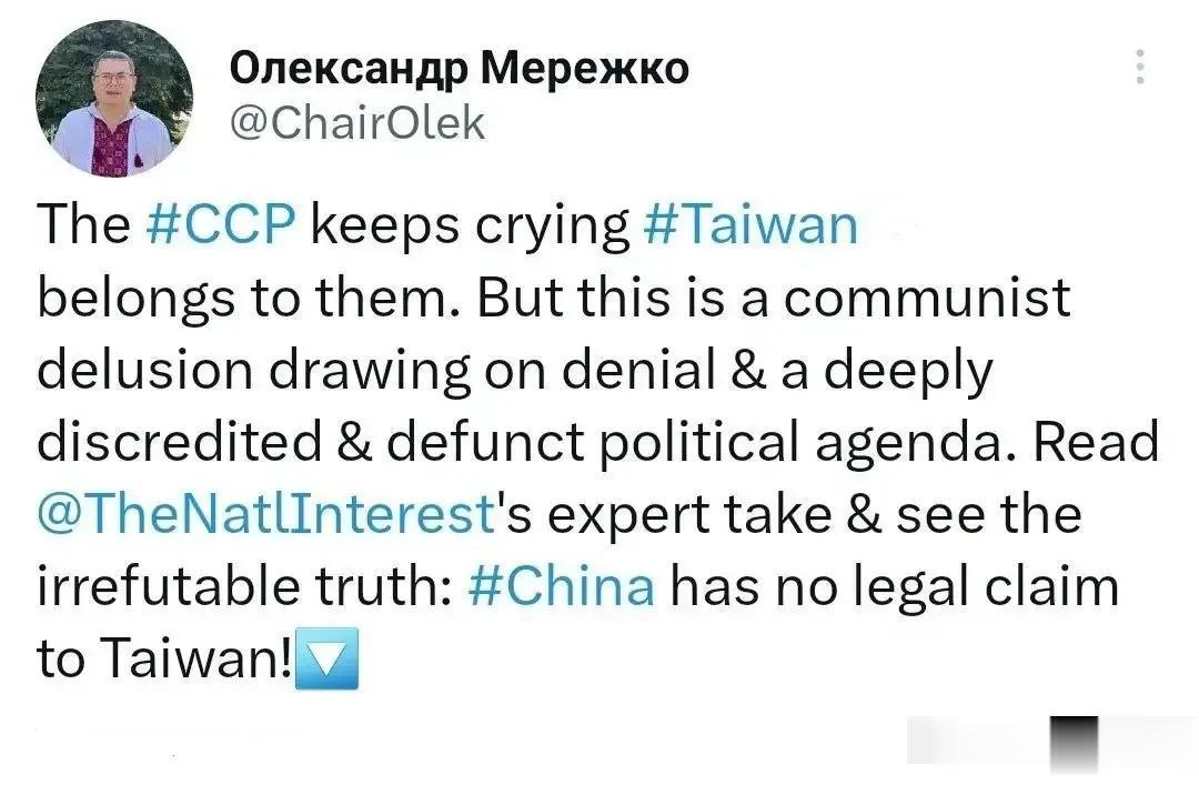 乌克兰议会外交政策委员会主席:“中国对台湾并无合法主权”。 我完全支持俄罗斯!