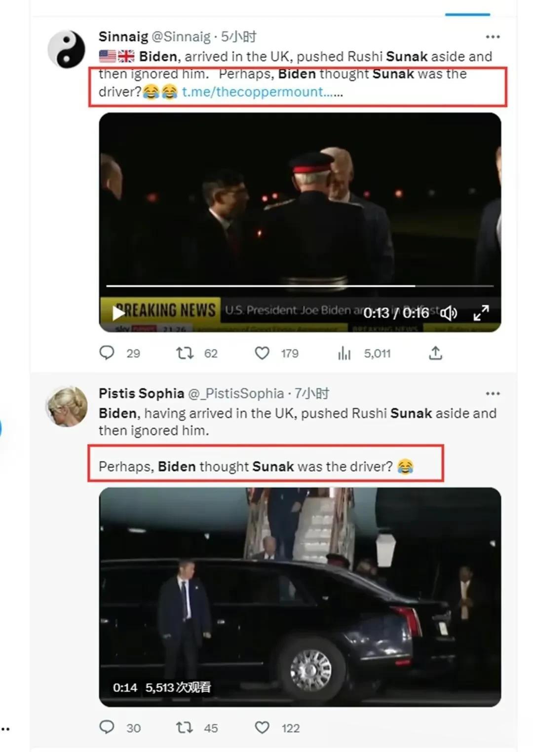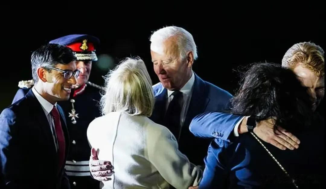 尴尬!英国每日邮报报道,拜登面对前来迎接的英国首相苏纳克,做出了“一把推开”的动