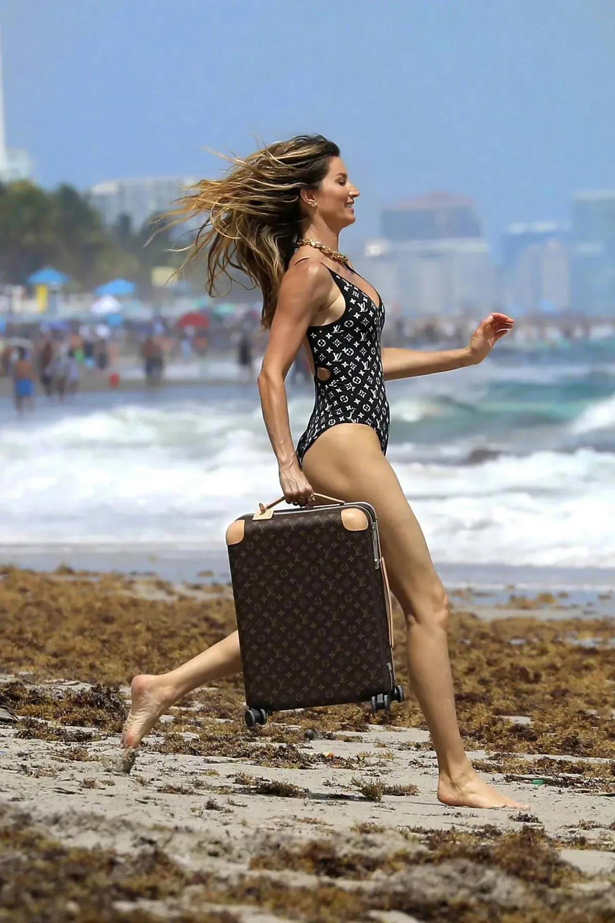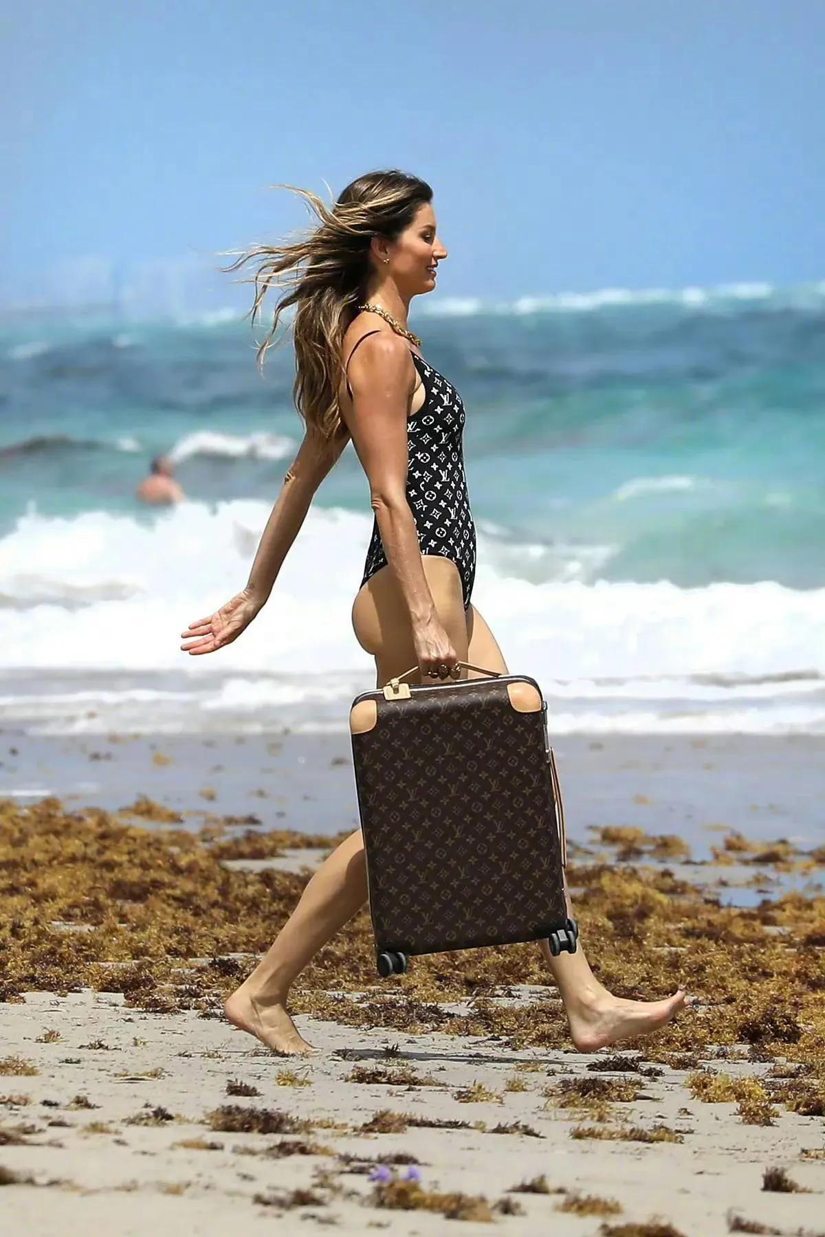 吉赛尔·邦辰身穿泳衣给路易威登手提箱做广告,健美紧致的身材无可挑剔。 42岁的巴西著名超模吉赛尔·邦辰,虽然人到中年,但是身材依然火辣,拥有着欧美超模的高大健美,凹凸有致的身材,浑身散发着成熟女人的魅力,把高级感的美演绎到极致,吉娘娘保养得太好了。