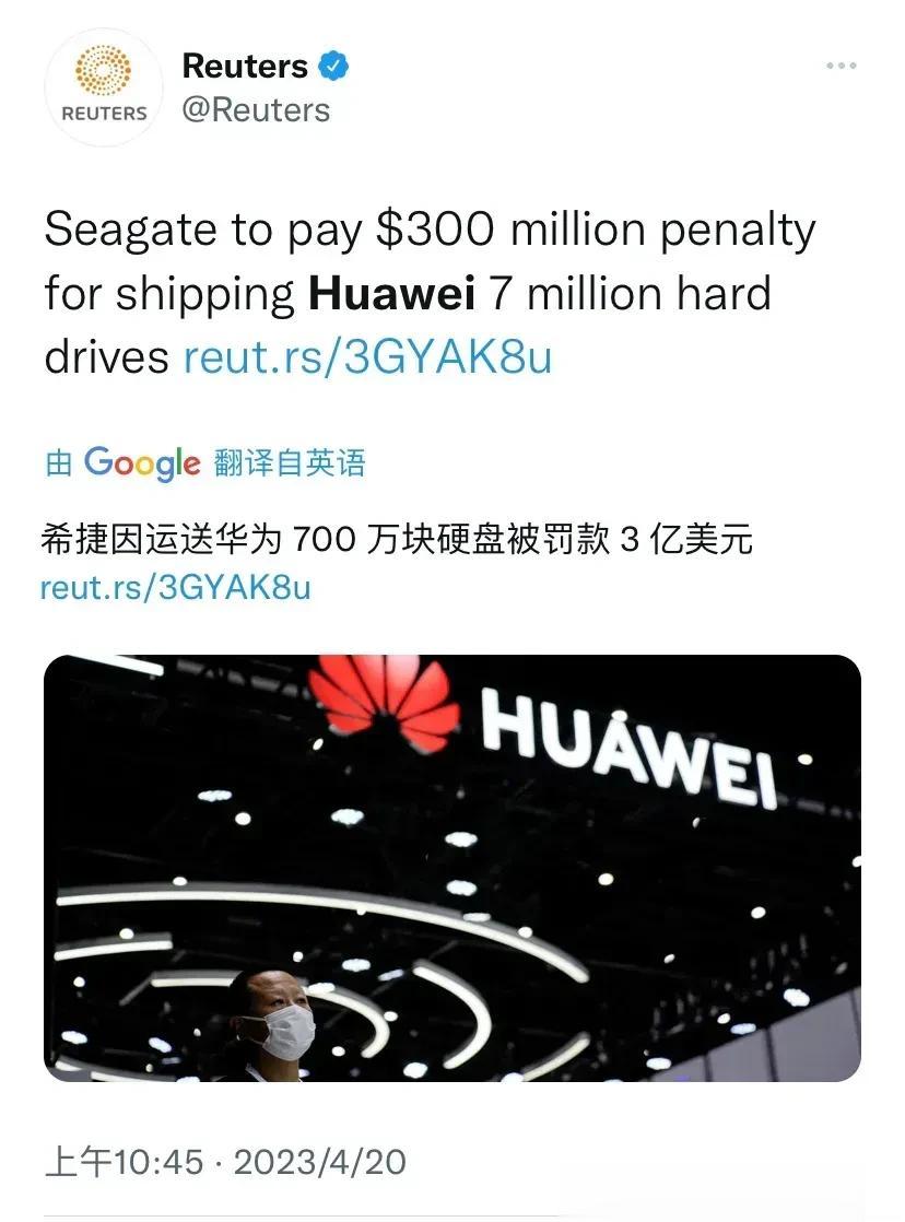 再下一城!美国商务部表示,希捷科技已同意支付3亿美元罚款,与美国当局就违反美