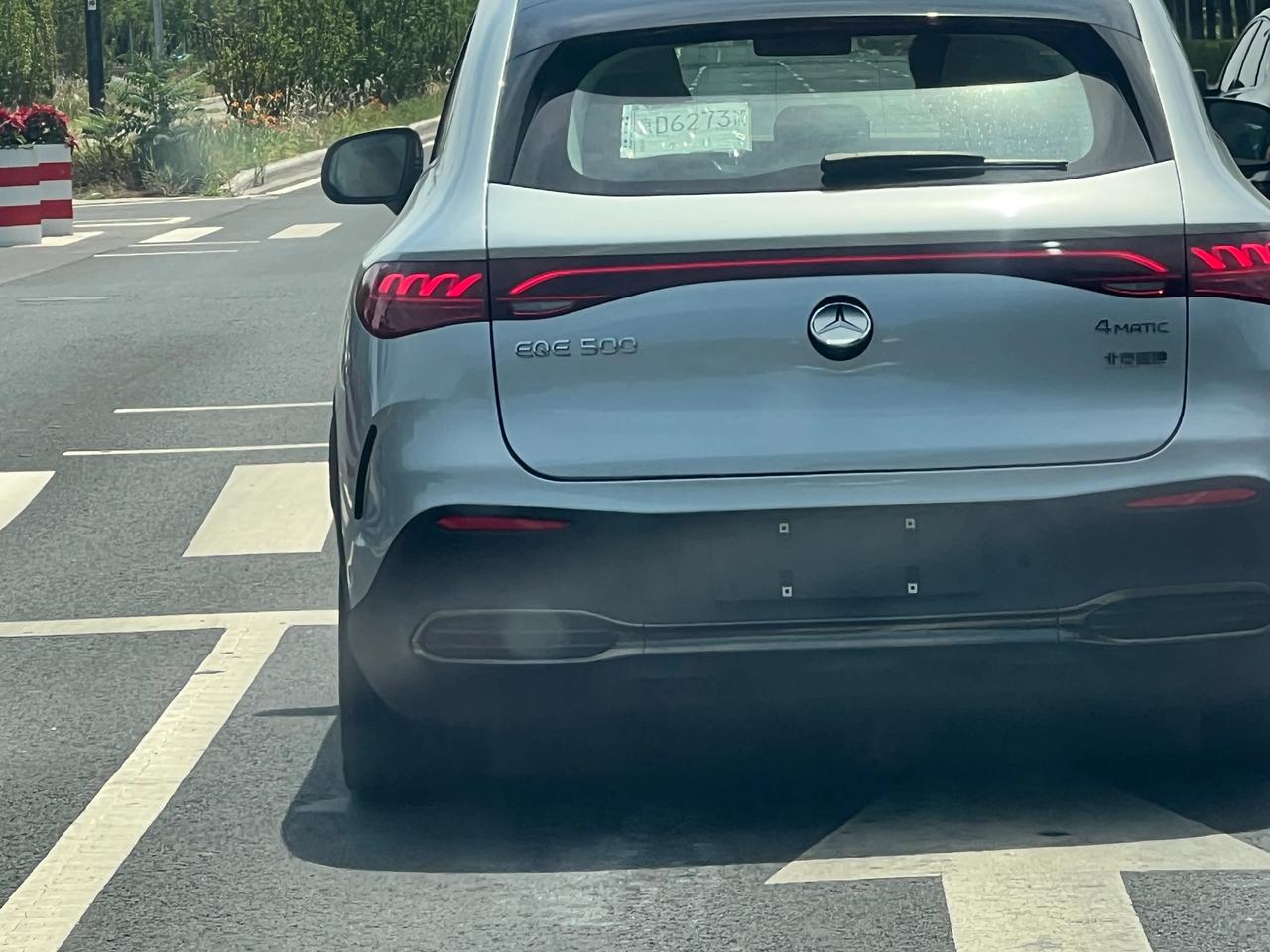 路上看到一辆奔驰EQESUV500,实车感觉不显大,就是这车每次一停红灯,后