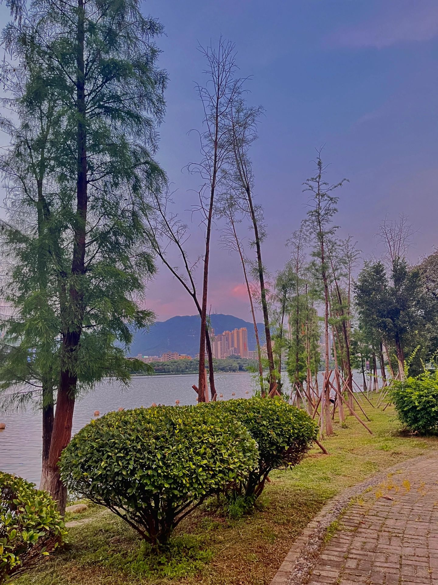 ⚠️飞来湖在万达广场附近,步行就可以到,傍晚过去可以看到日落🌄就一个很普通的公园,像是还在建设中,超级多蚊子🦟沿着湖边走还有很重的鱼腥臭