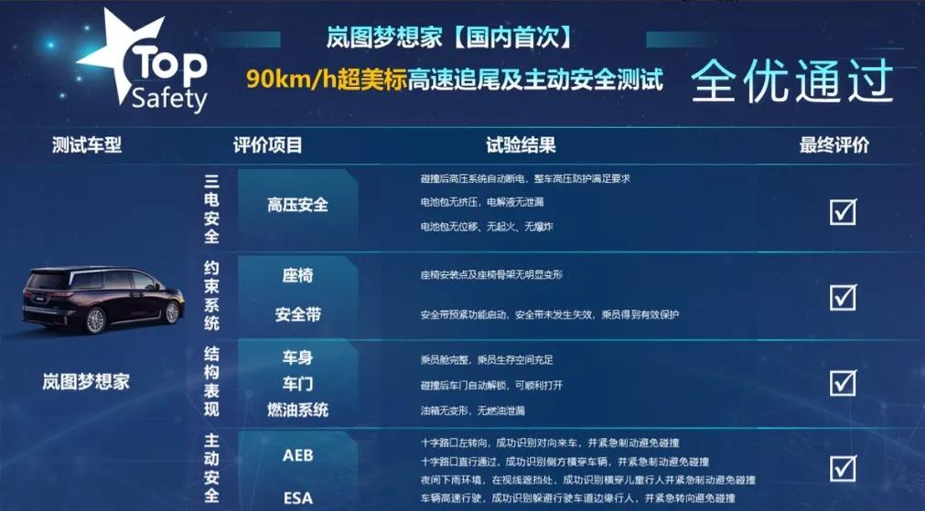 想买高端MPV,现在该怎么选? 对此我建议是不妨看看一些大型的颁奖典礼、节目,能够成为这些大会的指定用车,产品实力肯定是没毛病的,跟着选准没错。 就拿前段时间举办的第十八届、十九届华表奖颁奖典礼来说,岚图汽车是成为了这个活动的唯一指定用车。加上之前的金鸡奖、百花奖,岚图汽车其实已经是承包了中国电影三大奖的指定用车,如果说一次是运气,那么受到了三大奖的认可,足以说明岚图汽车也确实有点东西。 就拿岚图梦想家来说,这是一款由岚图打造的高端新能源MPV,轴距长达3200mm,加之航空级座椅、全景天幕、氛围灯等配置,有着非常舒适豪华的乘坐体验。另外岚图梦想家的安全性也非常突出,不仅有着全方位的主被动安全配置,此前更是完成了国内首次90km/h超美标高速追尾测试,并且获得了全优通过的成绩,包括第三排乘员得到了有效保护,无燃油泄露、电池包无起火/爆炸等表现。 由此可见,咱们国产品牌已经强势崛起,即使在高端MPV市场中,也有着像岚图梦想家这样优质且安全的产品可选择。