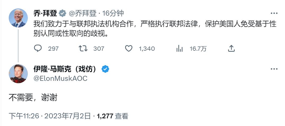马斯克的假冒帐号在评论区回复:“不需要,谢谢。”