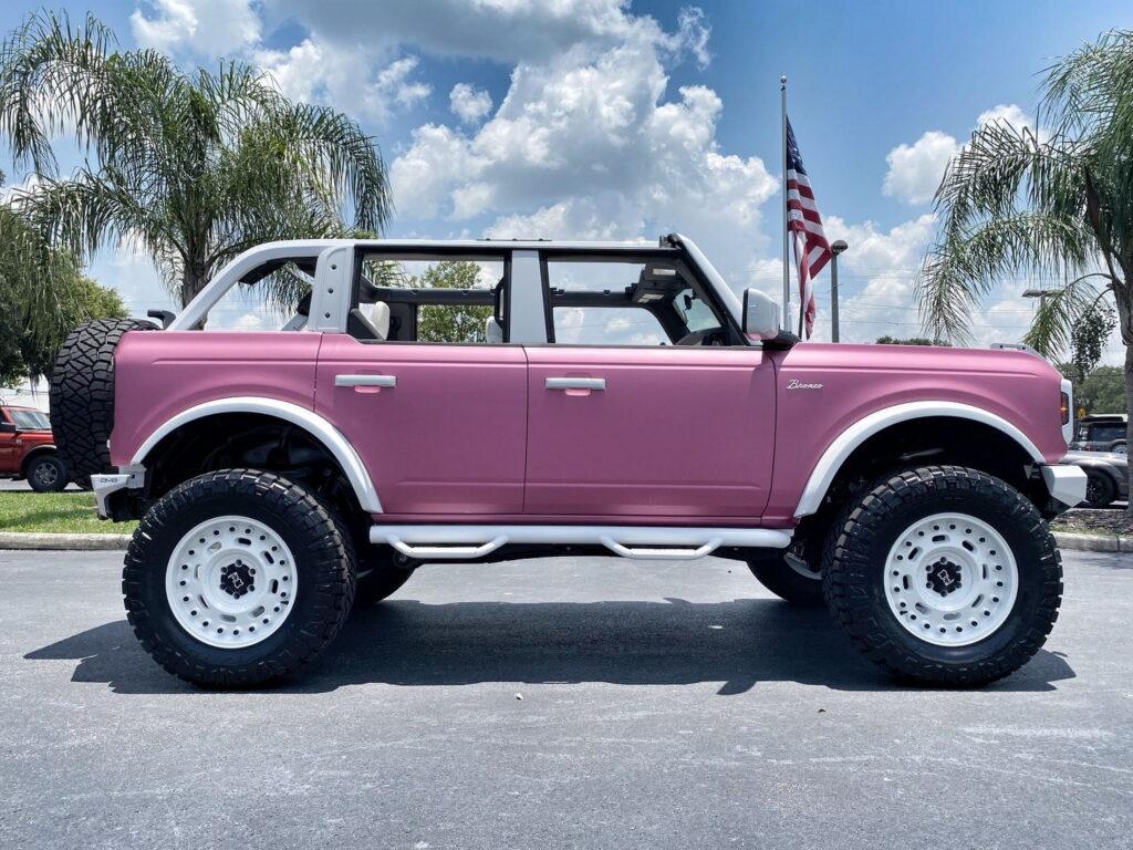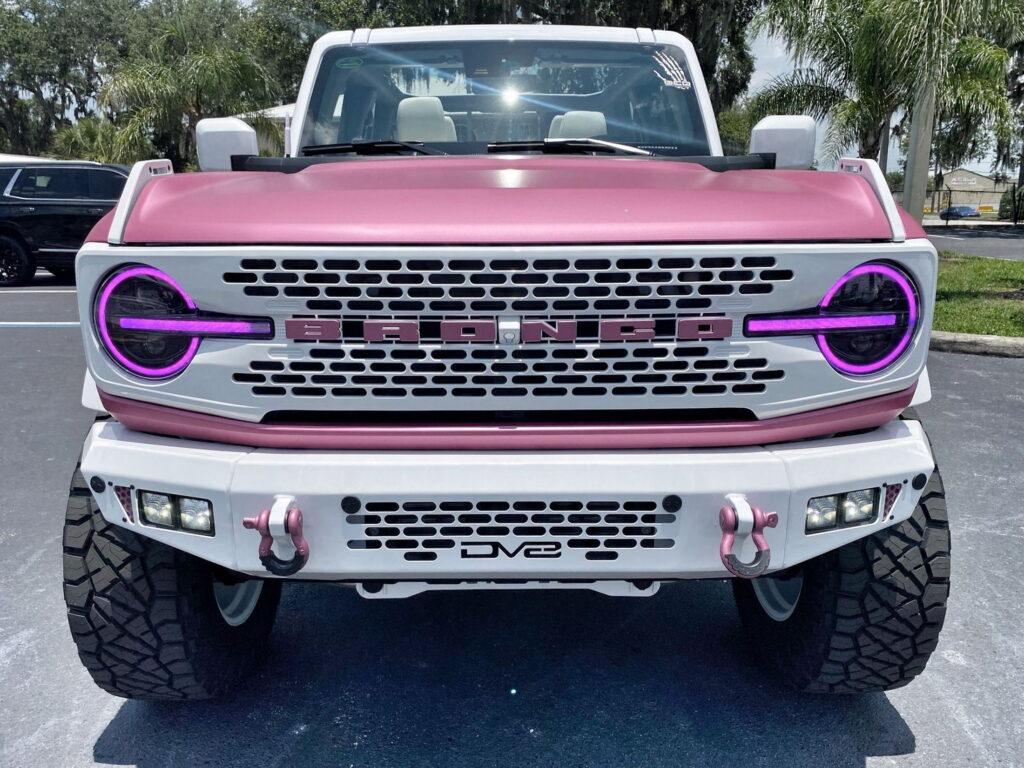 粉红色福特Bronco!这是哪位美眉定制的啊!该项目基于一辆白色 2023 款福特 Bronco四门车,配备 2.7 升 EcoBoost V6 发动机和自动变速箱。根据里程表读数,该车仅行驶了 238 英里(383 公里)。这款“芭比梦幻Bronco”目前在佛罗里达州普兰特城有售,售价为 89,890 美元。
