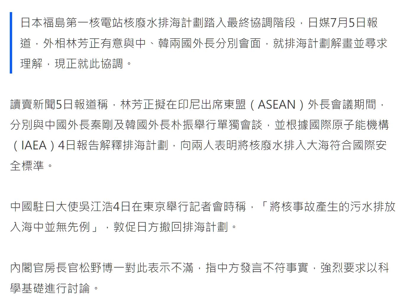 日本方面就核废水排放事宜,向中韩寻求“理解”。