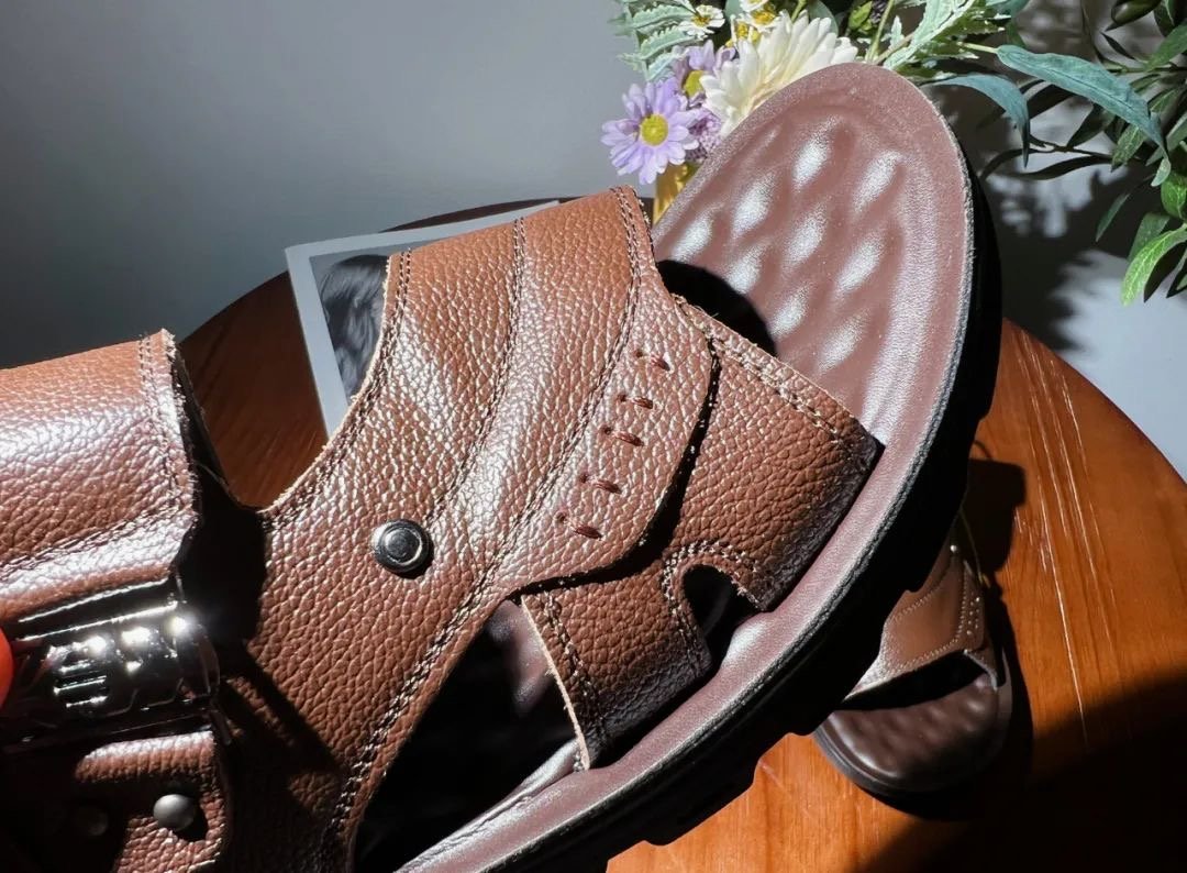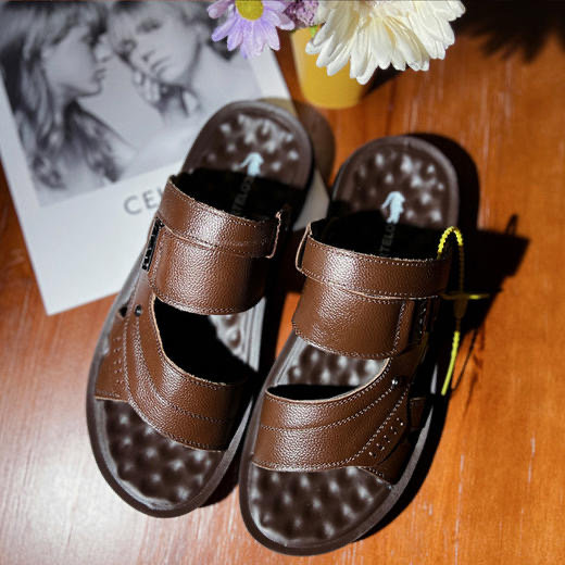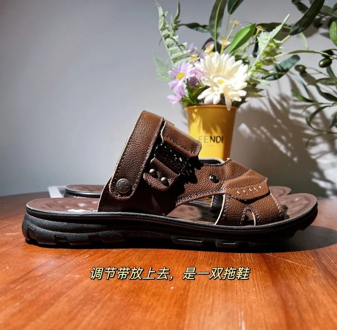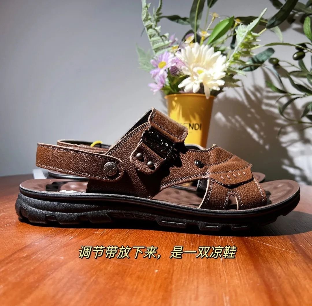 头层牛皮材质,很有档次。上脚也超软、超舒适~而且它还是一双鞋两种穿法,凉鞋、拖鞋可随意切换,穿脱很方便。