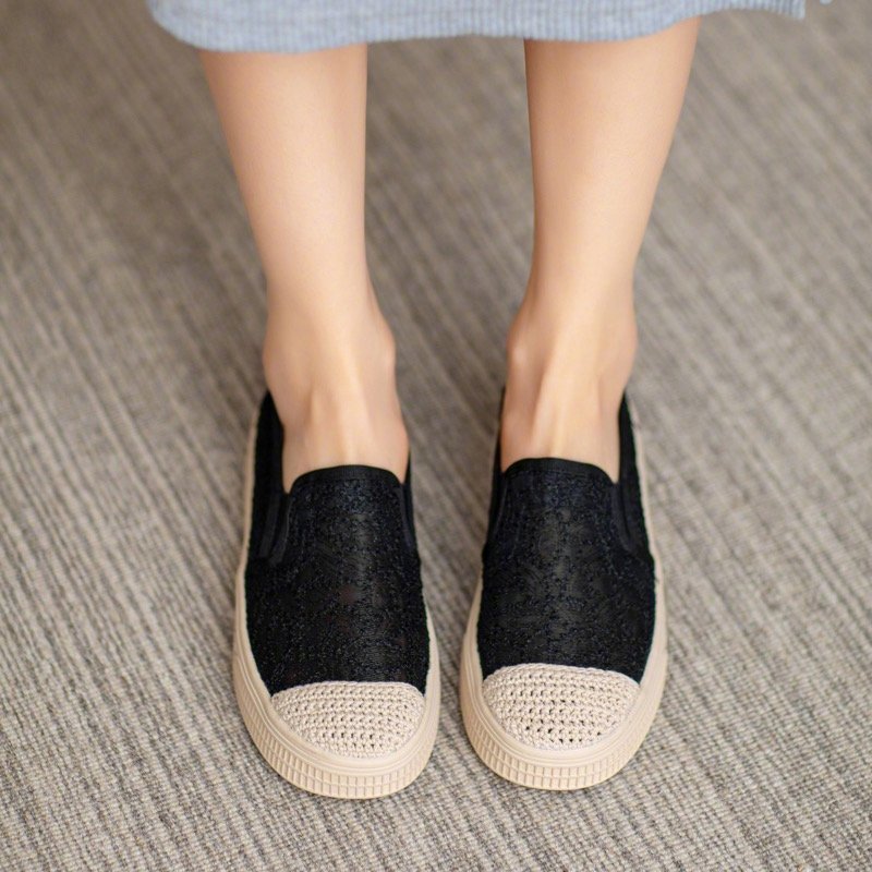 鞋子侧面两边还有松紧带的设计,脚胖的、脚宽的穿也不勒脚,一伸就可以穿上了;鞋子在制作时没有硬质接缝与僵硬的边缘,能很大程度减少我们穿着的不适感,两边自然包裹,不磨脚,不压脚。