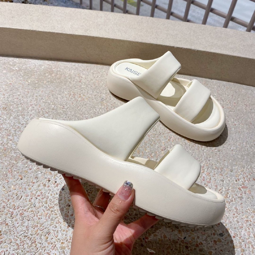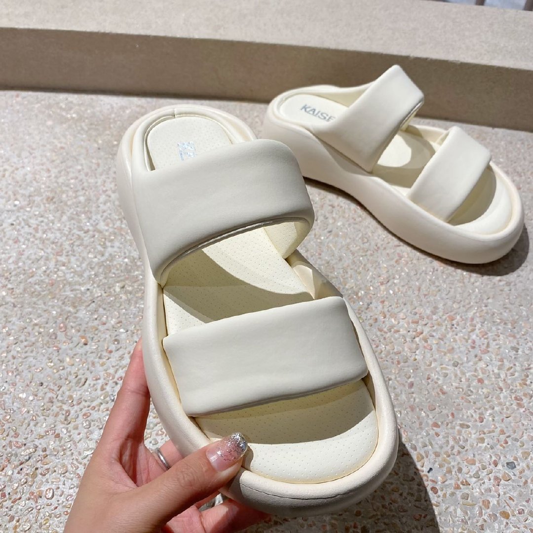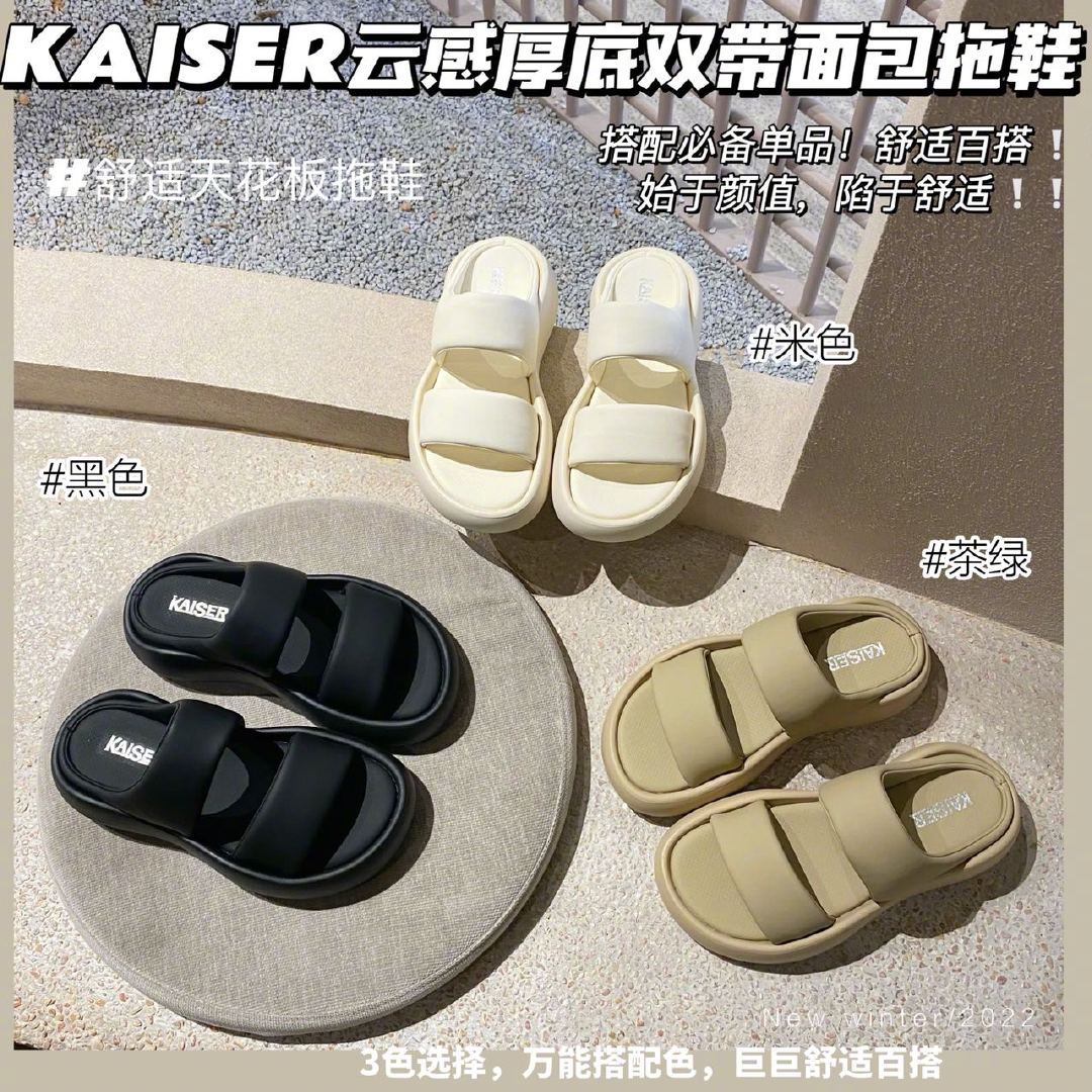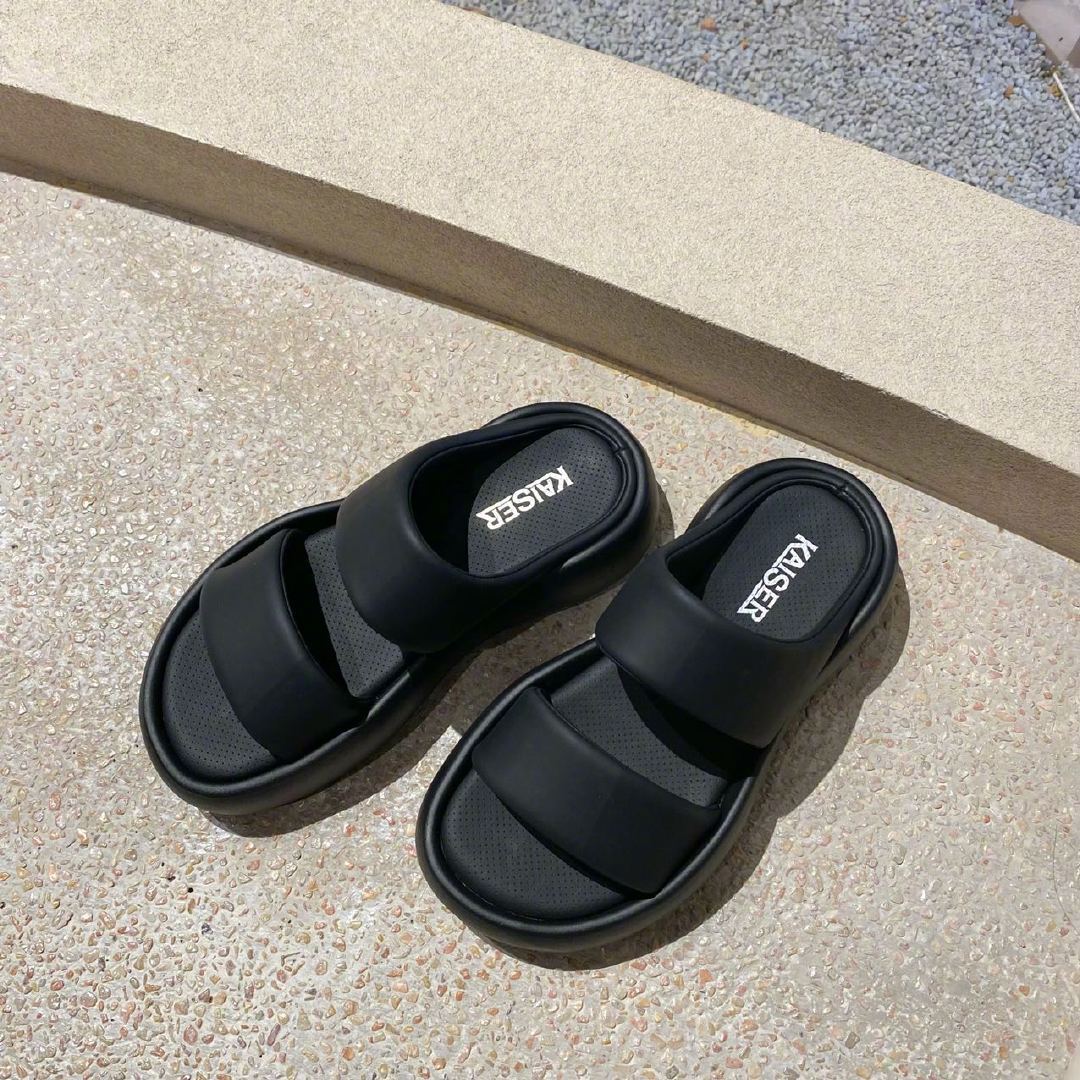 『凯撒KAISER云感厚底双带面包拖鞋』