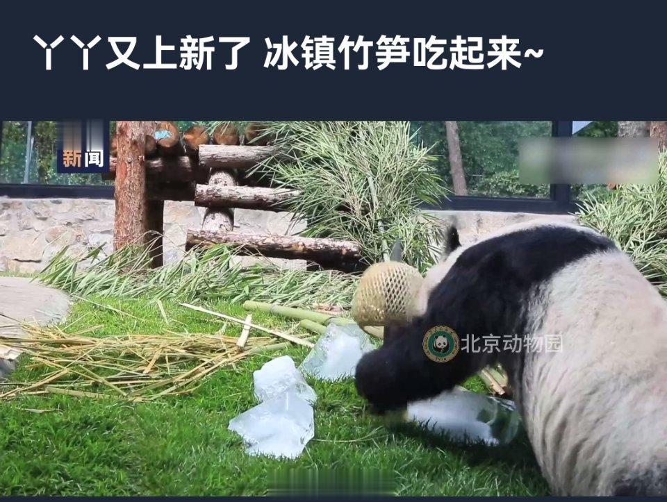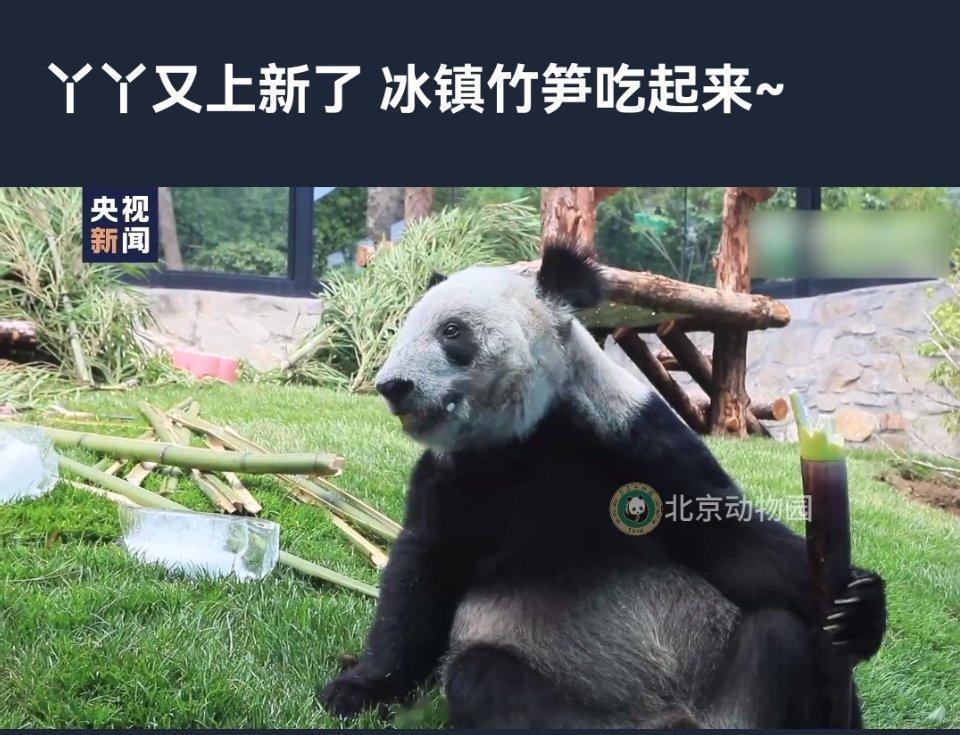 #动物园为丫丫开启喷淋模式#丫丫又上新了冰镇竹笋吃起来