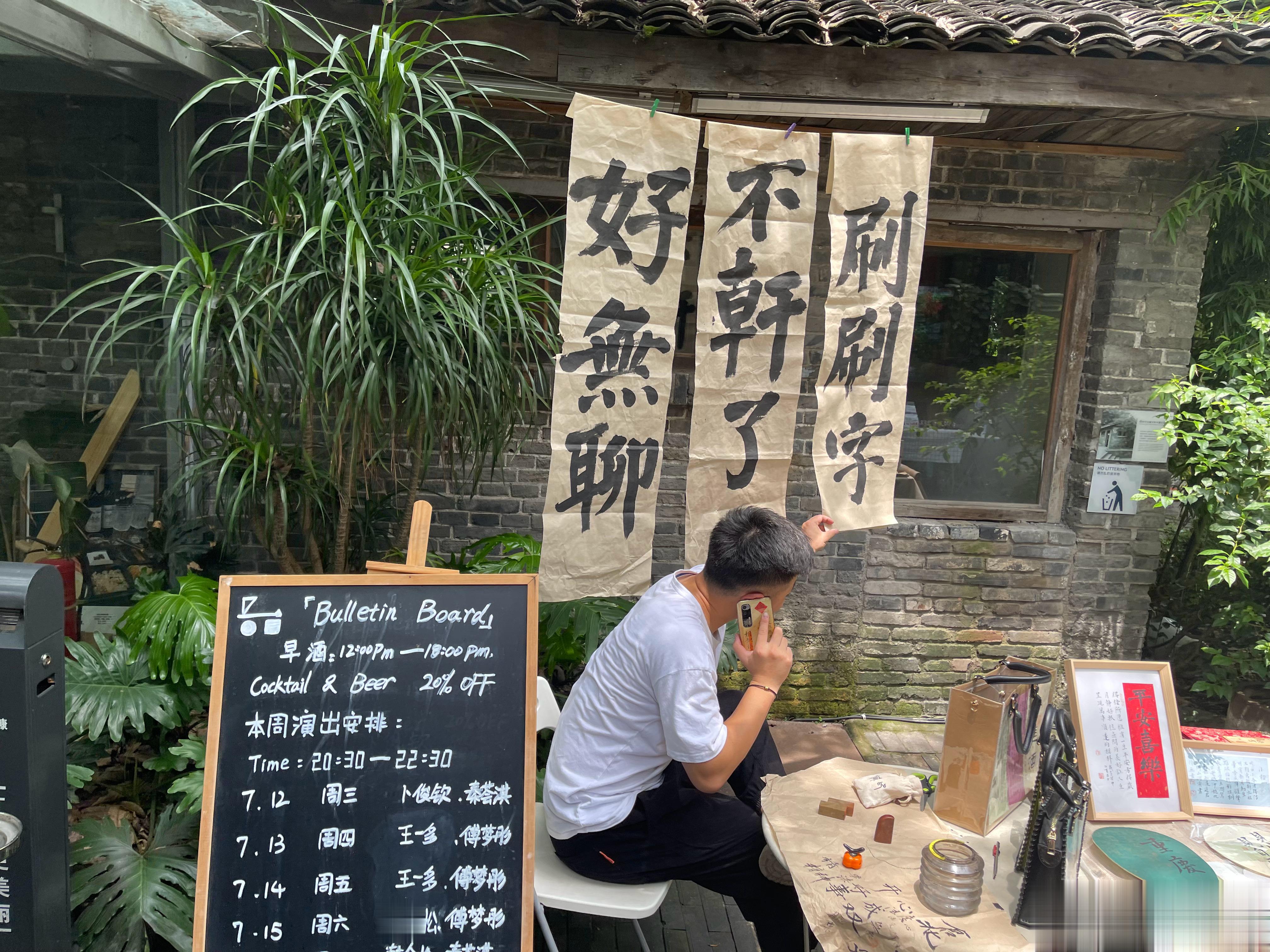 吃完火锅,和和在北仓文创街找了个二楼小茶馆休息,这里好多年轻人在拍照什么的