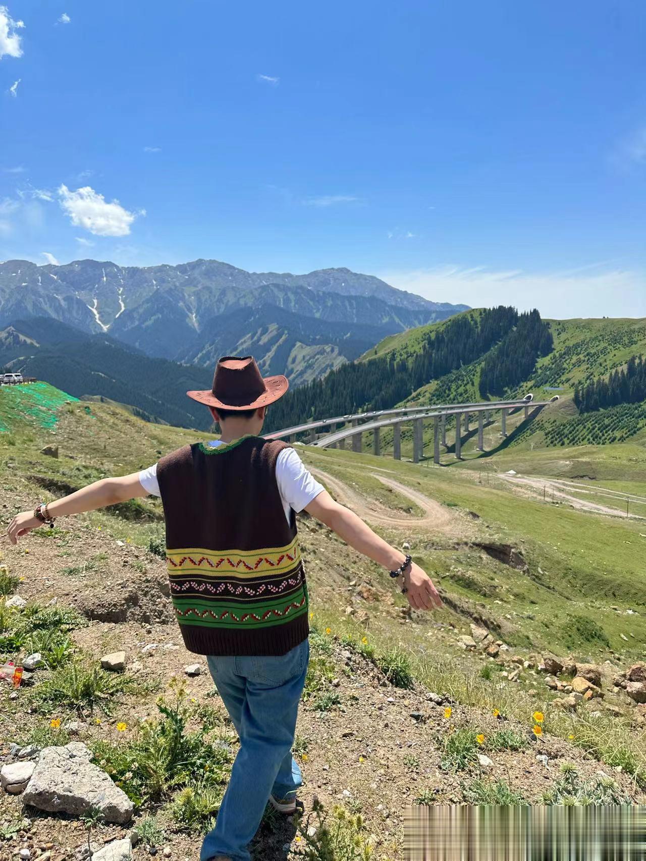 #张大大第一次来新疆# 张大大还是一如既往的活蹦乱跳,去新疆的游客照看起来好开心!新疆的美景太吸引人了,我都坐不住了,下一周我就要去新疆!#张大大晒新疆游客照#