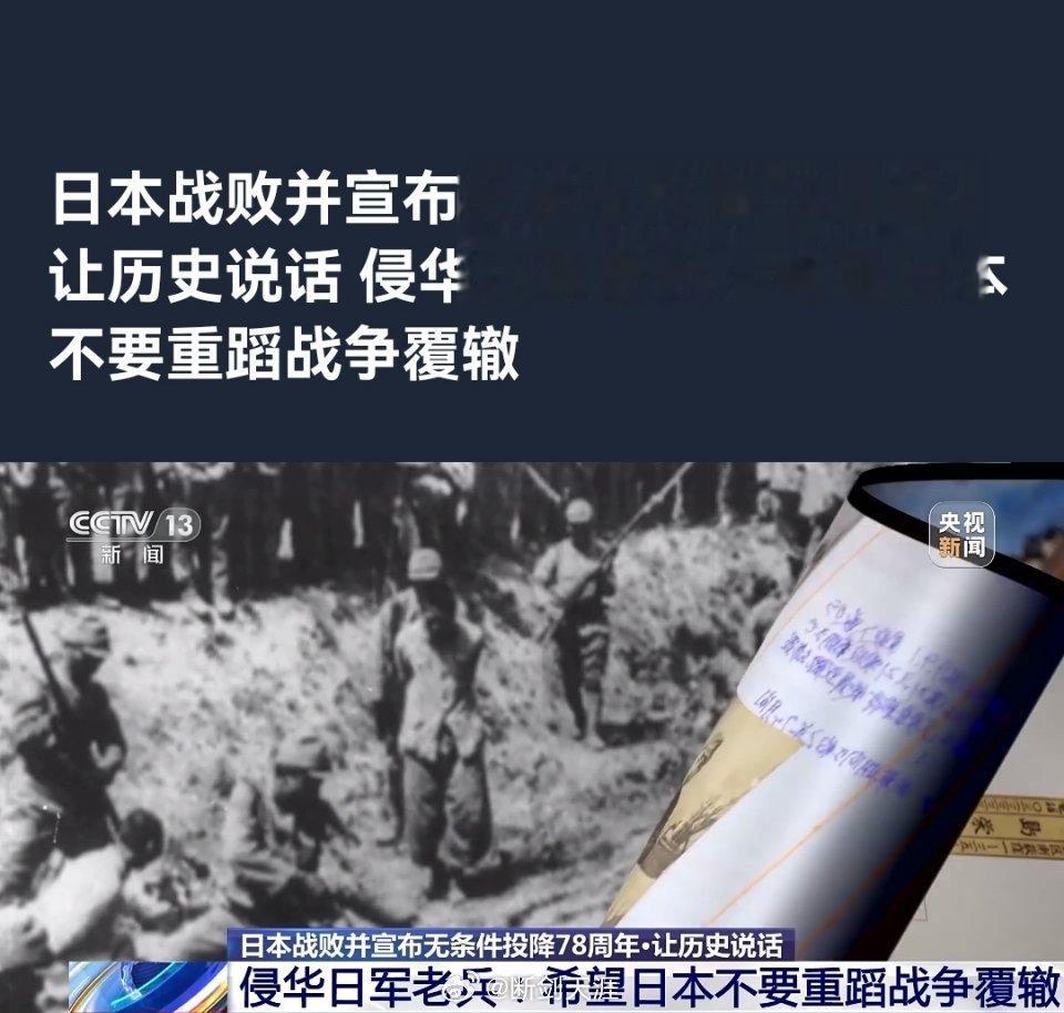 日本战败并宣布无条件投降78周年·让历史说话 侵华日军老兵:希望日本不要重蹈战争覆辙(央视新闻)(央视网)