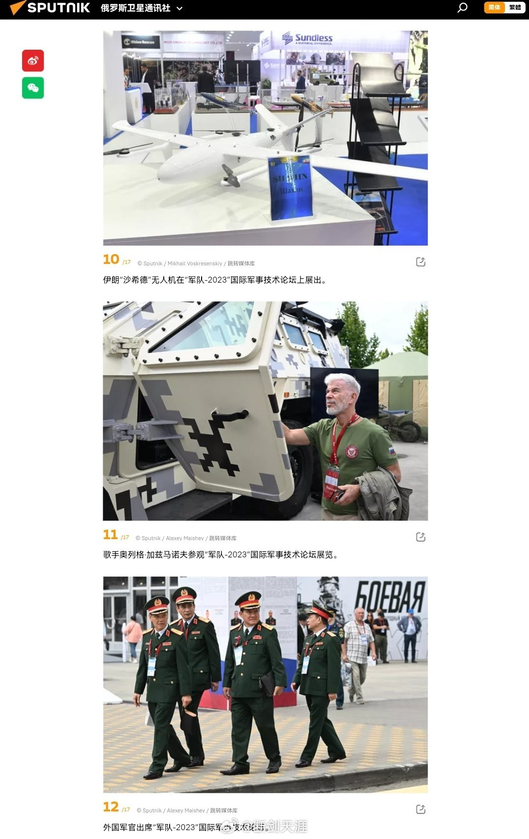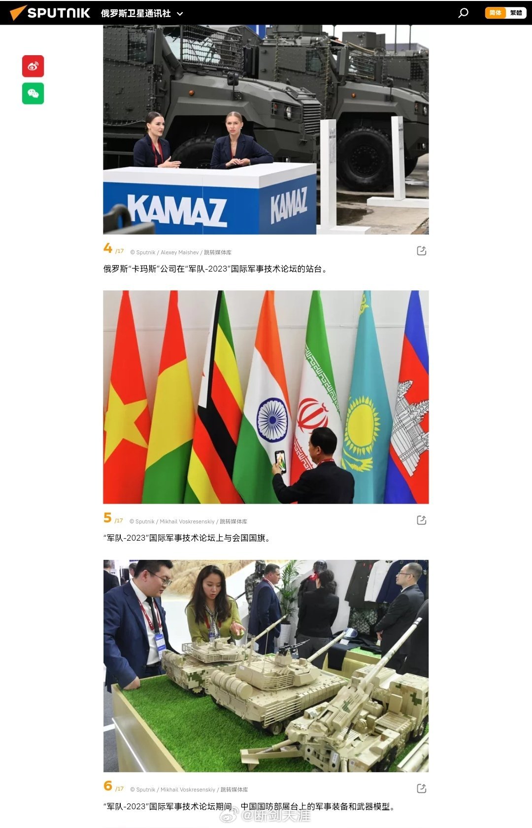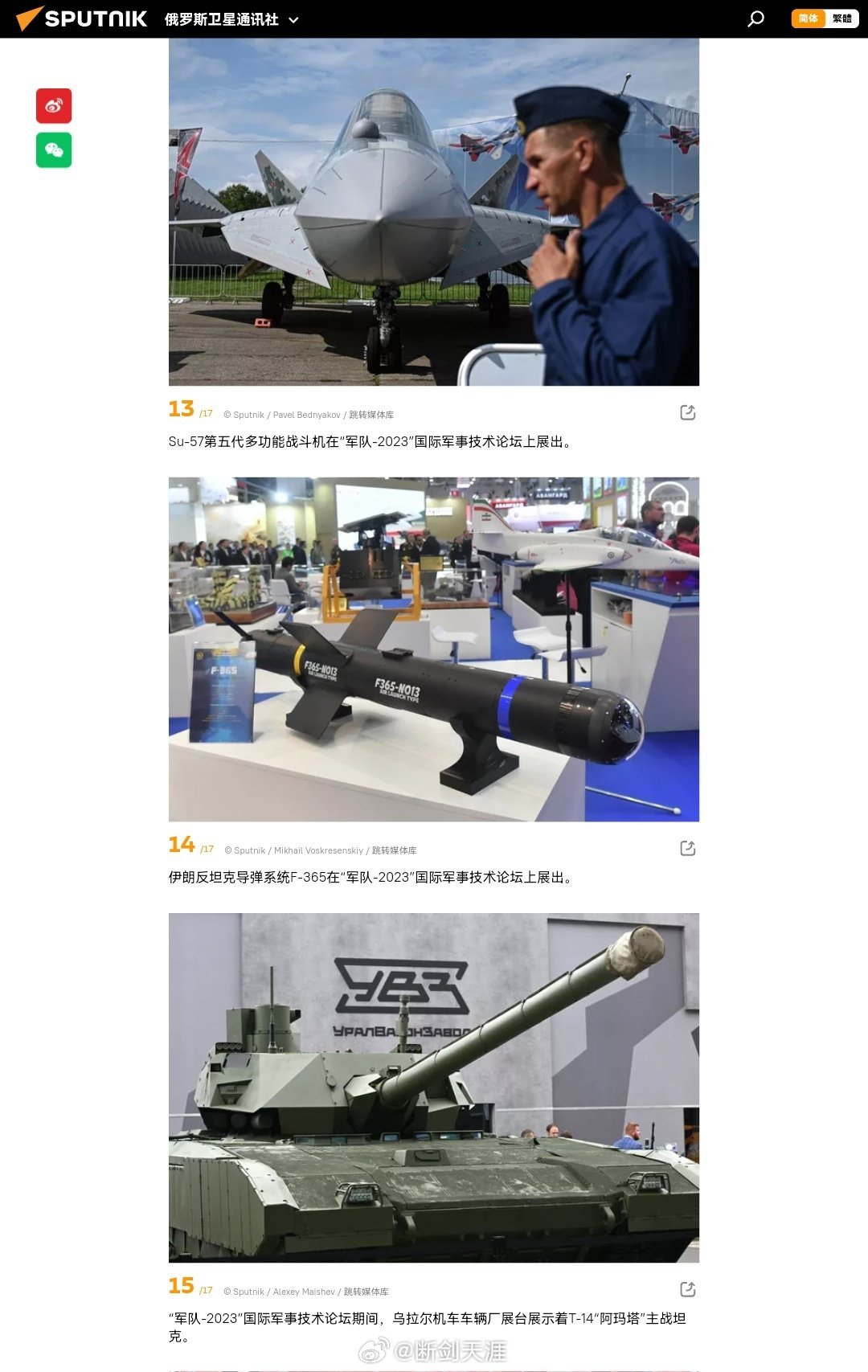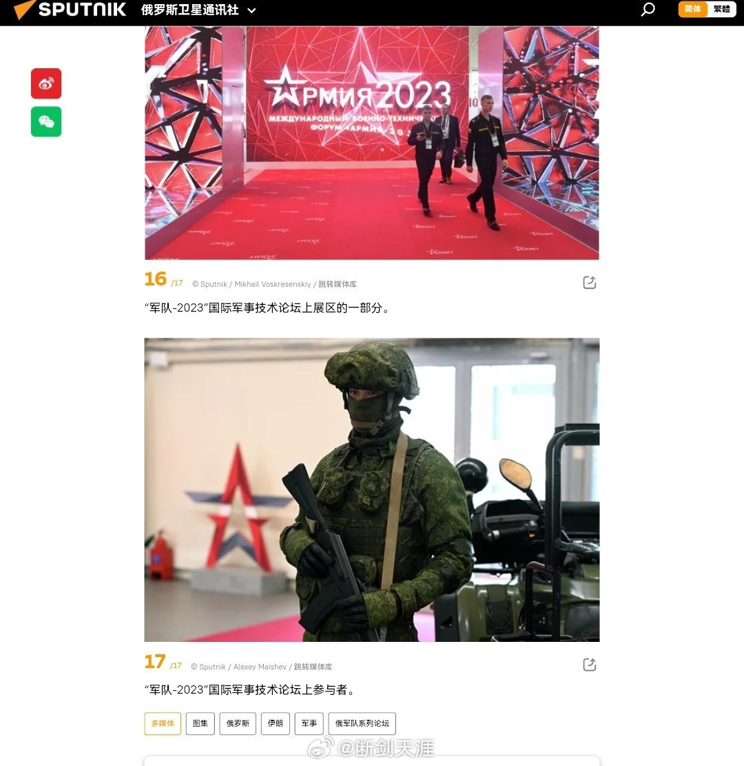 当地时间8月14日,俄罗斯“军队-2023”国际军事技术论坛在莫斯科州“爱国者会展中心”开幕。(俄罗斯卫星通讯社消息)