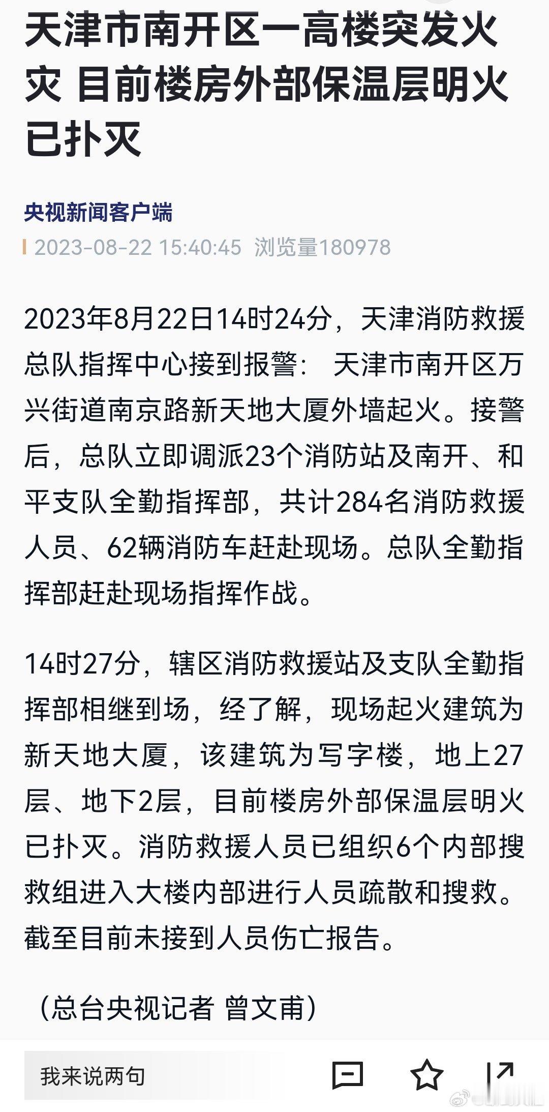 #天津着火大厦火情已被控制#出警迅速,灭火及时,中国消防速度!