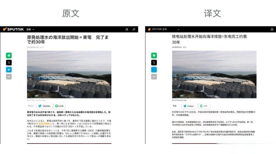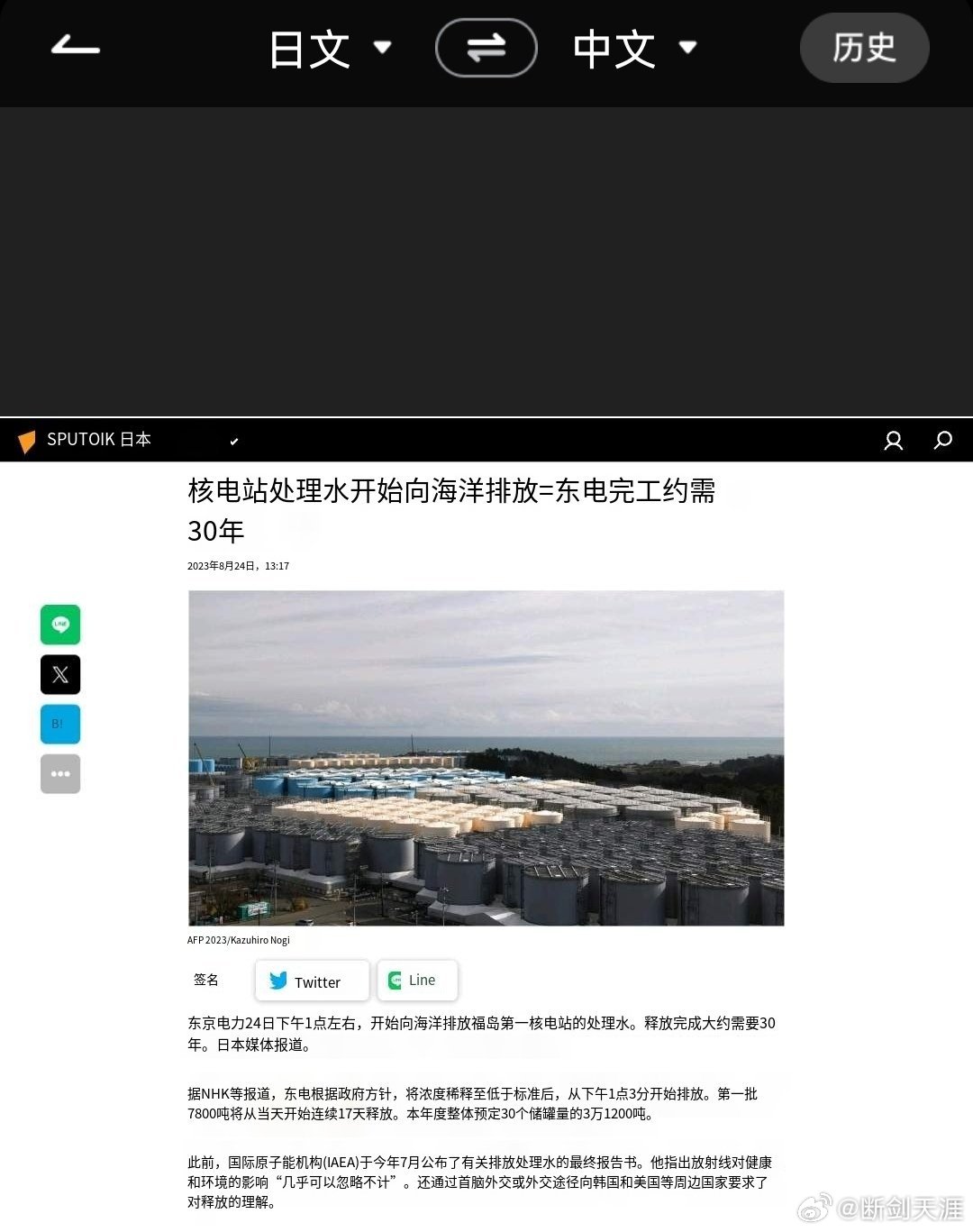 据NHK等报道,东电根据政府方针,将浓度稀释至低于标准后,从下午1点3分开始排放。第一批7800吨将从当天开始连续17天释放。本年度整体预定30个储罐量的3万1200吨。(俄罗斯卫星通讯社消息——国际日文版)