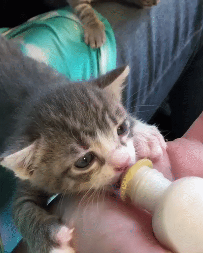 所以小奶猫喝奶的时候,都是在用耳朵使劲儿吗?萌哭了![笑cry]