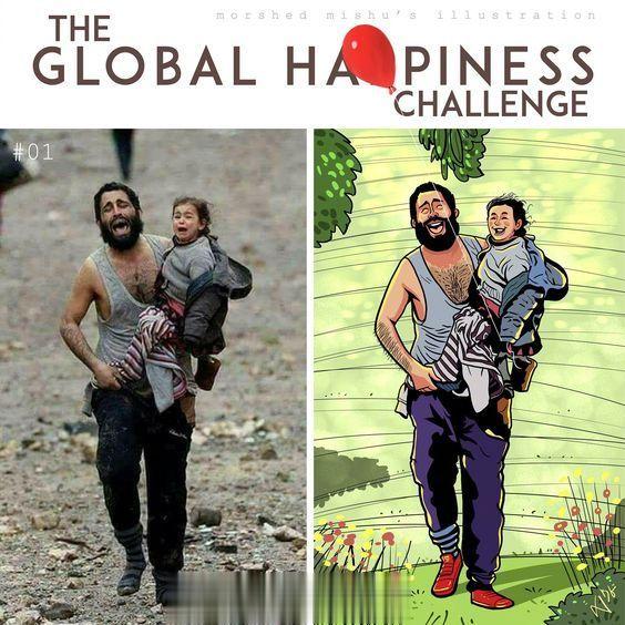 一组现实与理想的对比作品,美好与残酷的对比简直震撼人心,引人深思。