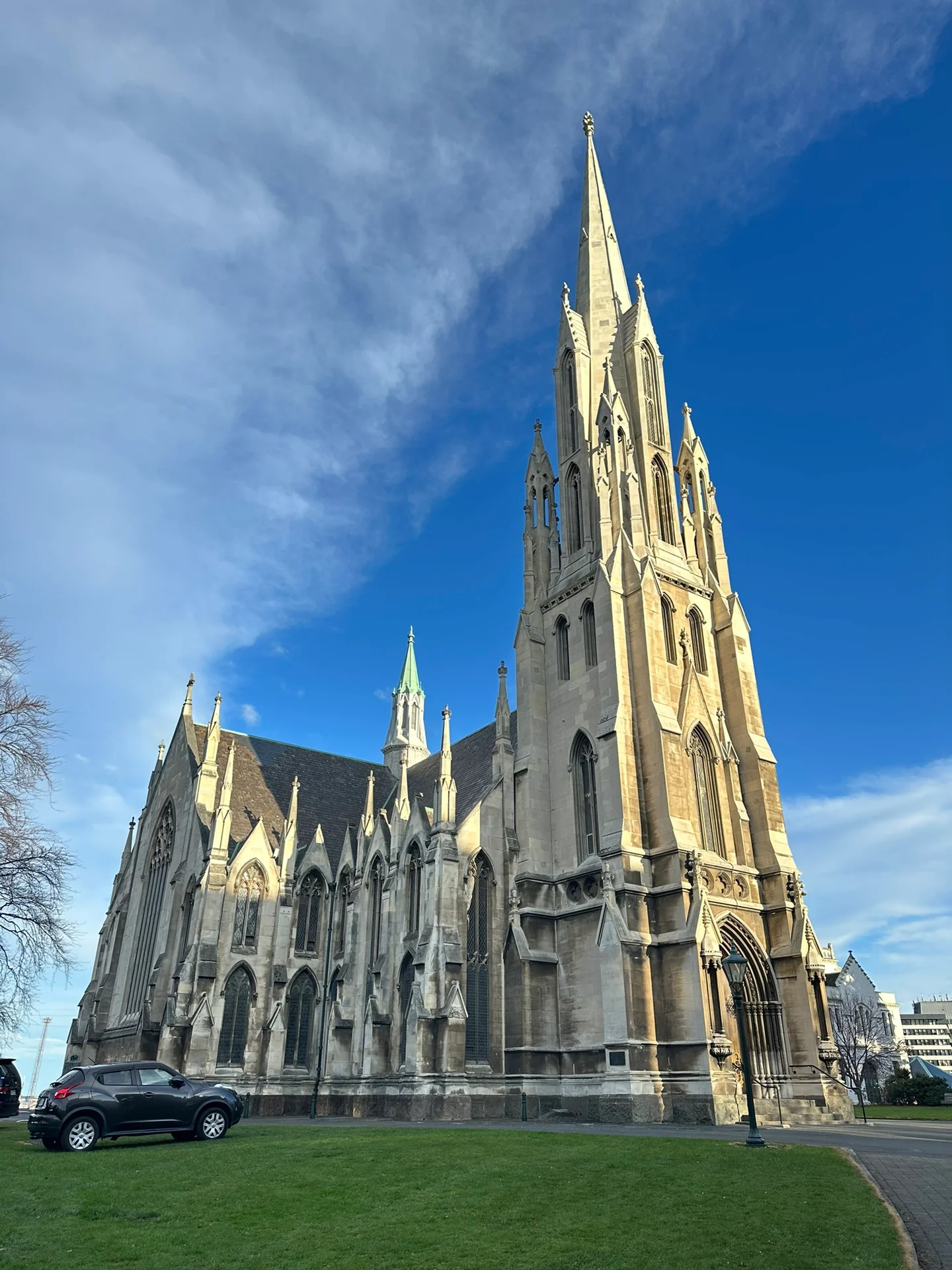 傍晚坐在奥塔哥大学河边吃”the flying squid”炸鱼薯条