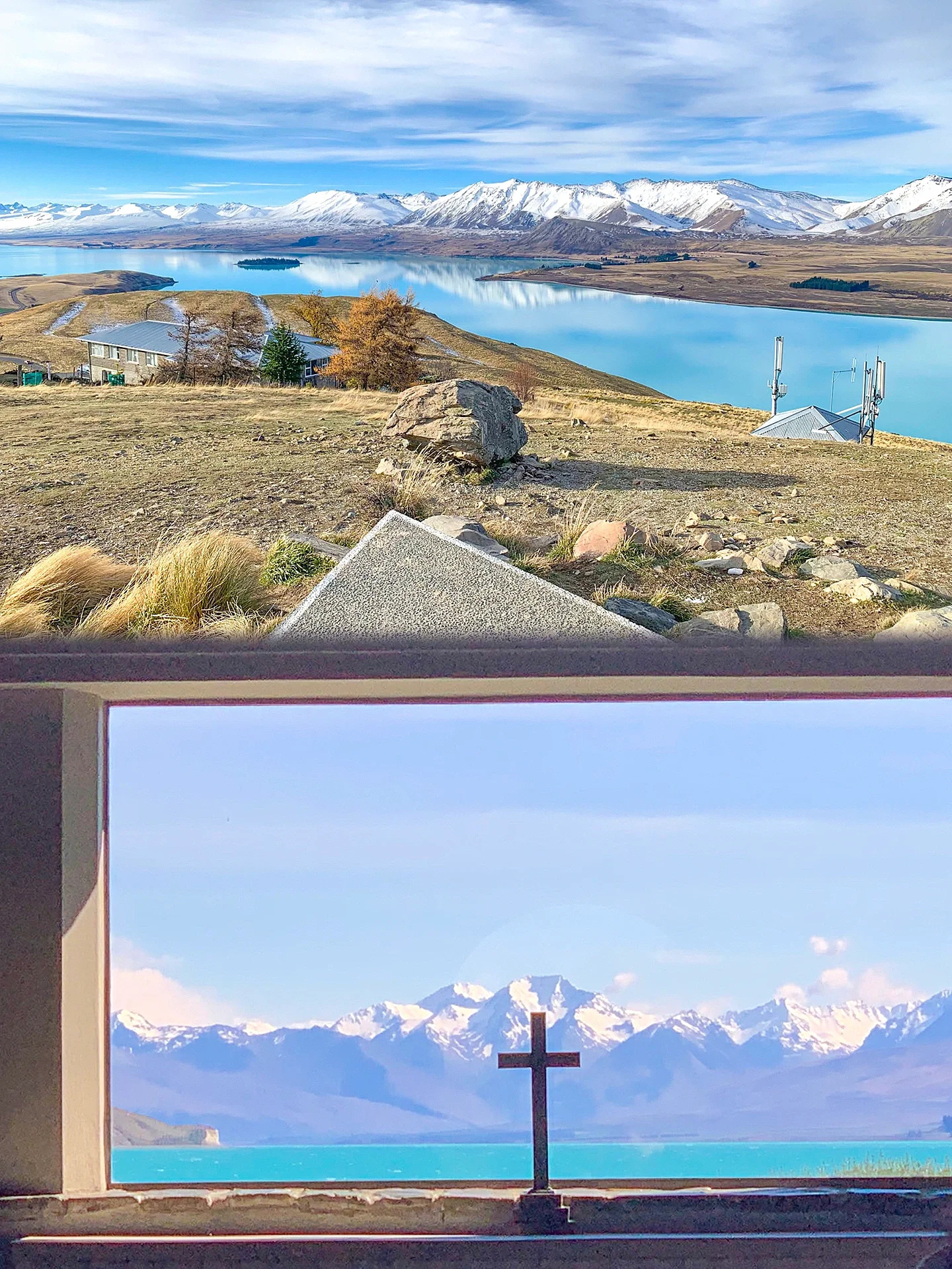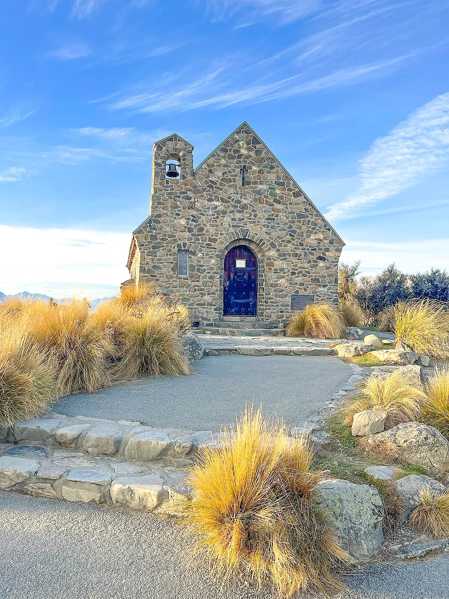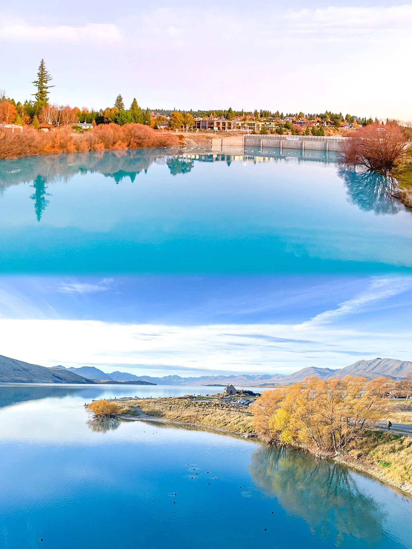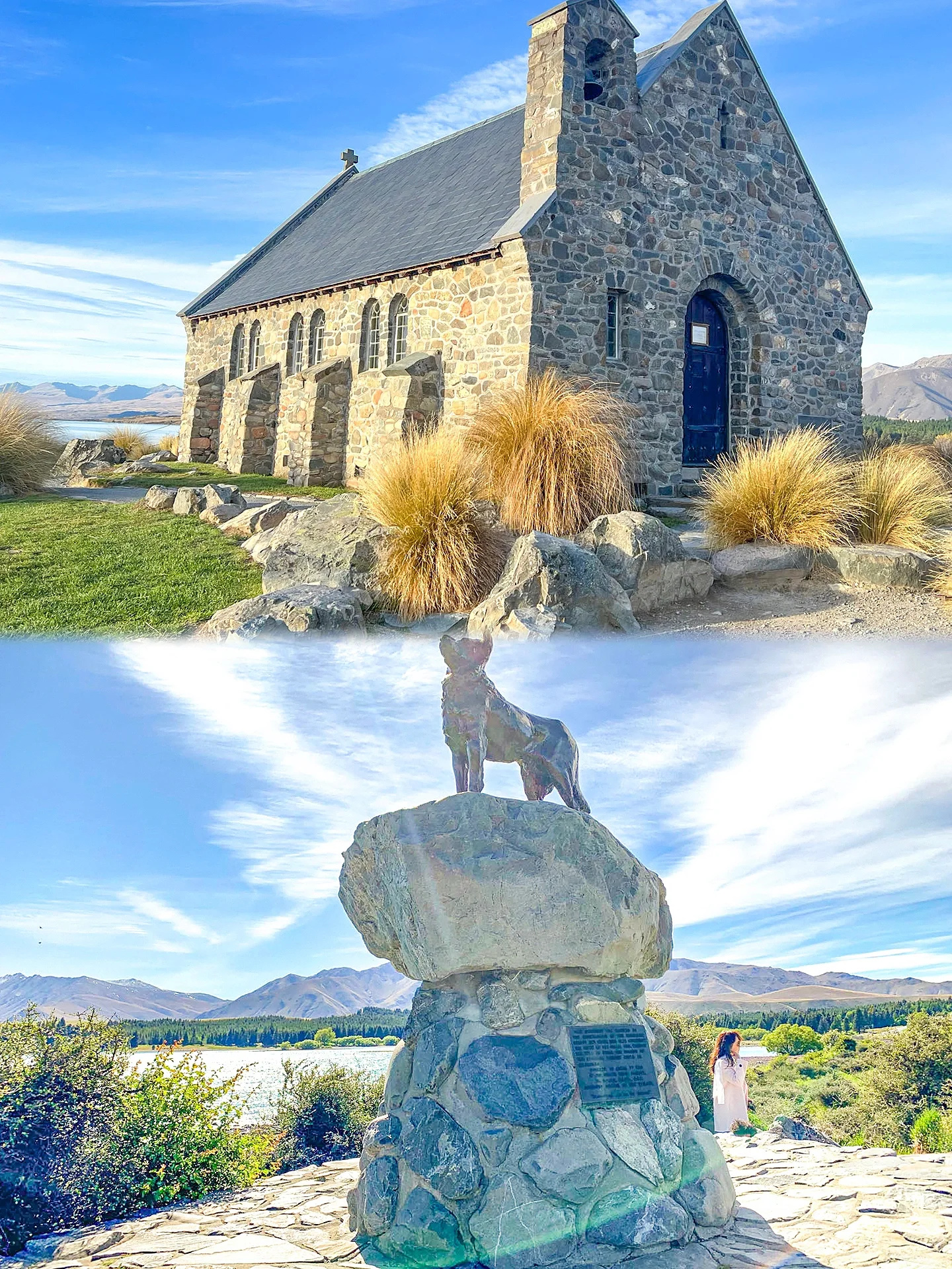 石砌而成的小巧教堂静静的矗立在Lake Tekapo湖畔,无论哪一个季节都美的像一幅画🏞️