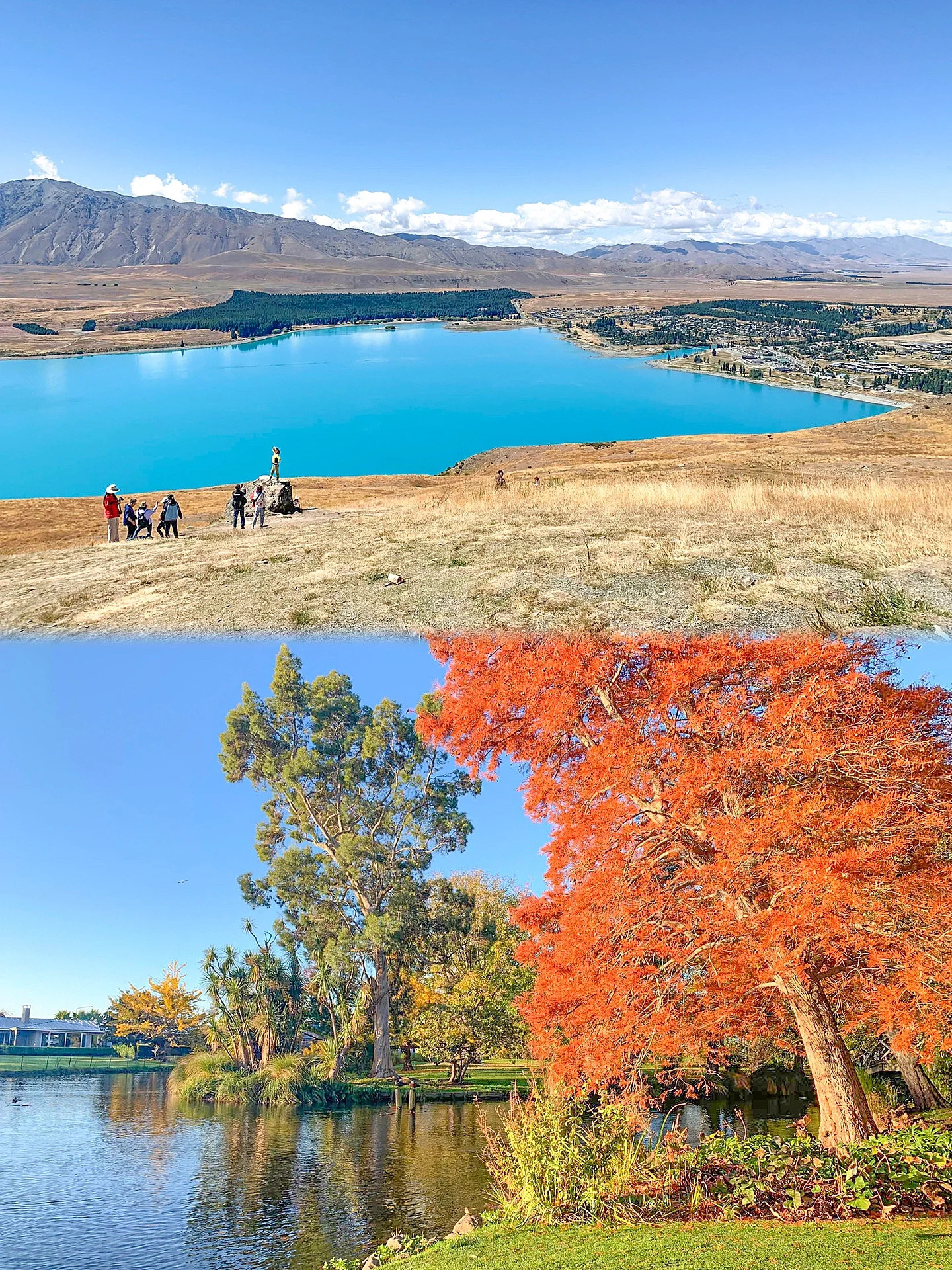 登上山顶可以欣赏到美丽的蒂卡波湖和湖滨小镇!